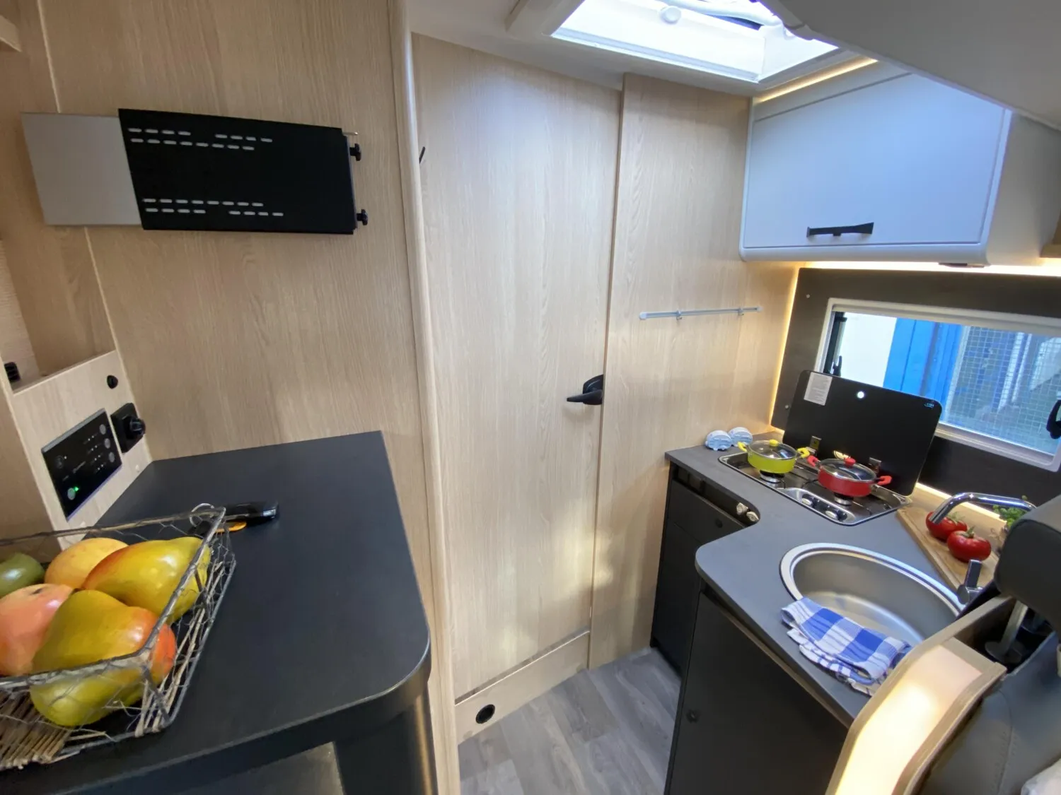- 12 V TV-Vorverkabelung inkl. Flachbildschirmhalter