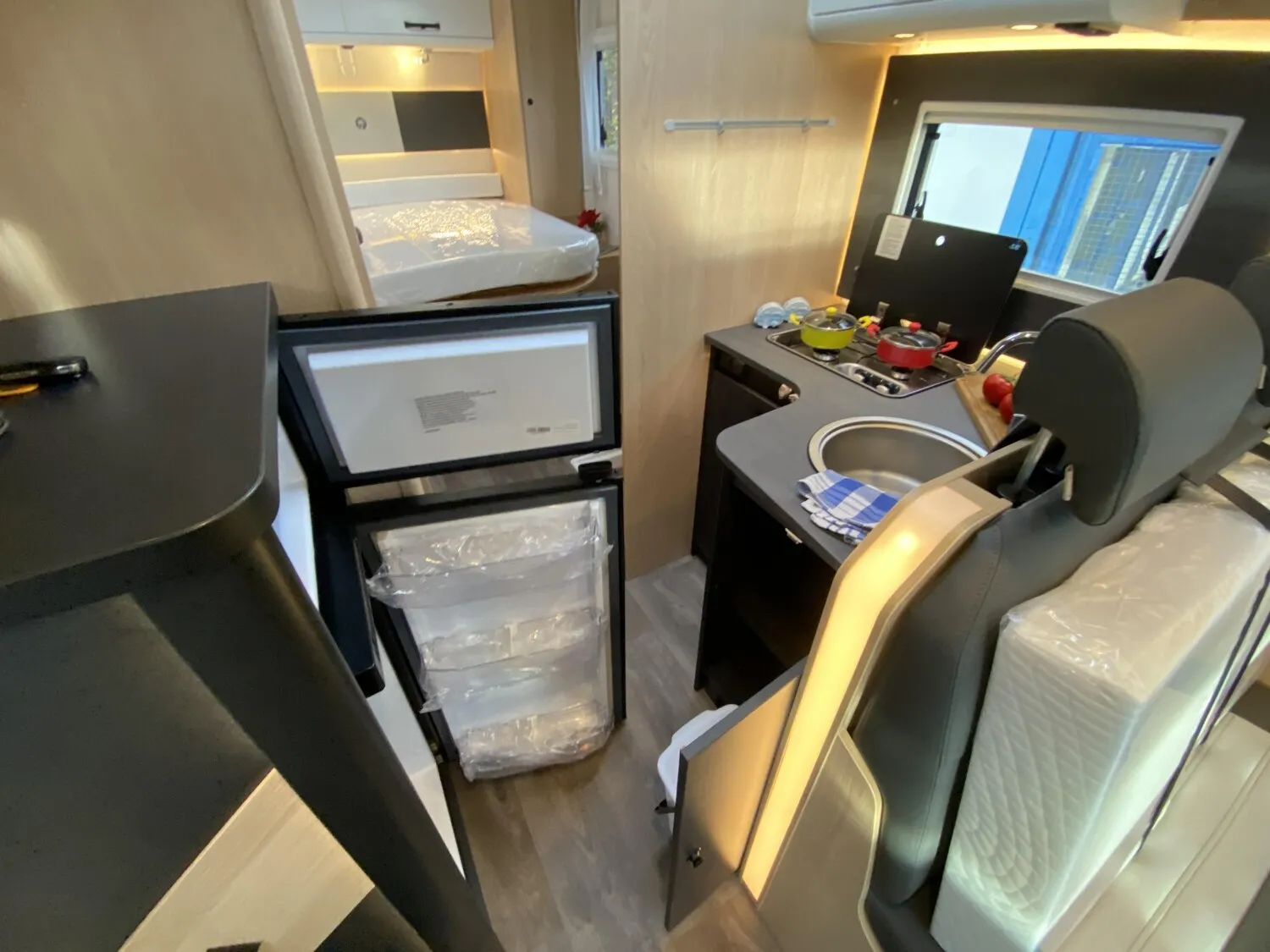 - Adventure Edition Teilintegriert Ford 2026 (Ford Transit 3.500 kg | 2,0l TDCi | 96 kW | 130 PS | Euro 6 | 6-Gang-Schaltgetriebe, Black Metallic, 16 Zoll Alufelgen schwarz, Seitenwand Silber Glattblech, Adventure Beklebung, Wohnwelt Adventure, Design Applikation Heck, Fenster in Fronthaube, Rahmenfenster, 2. Außenstauraumklappe (Größe modellabhängig), Großer Kühlschrank 156 l mit separatem Frosterfach 29 l, Bettenumbau Einzelbett zu Doppelbett (nicht T 690 L), Bettenumbau im Bereich Sitzgruppe (nur T 690 L), Paket One Black (Markise, Fahrradträger 3-fach), Basic Paket (Bridge Light, Komfort Eingangstür mit Fenster, Fliegengittertür (einteilig), Panoramadachhaube 70 x 50 cm, Klarglasdachhaube 40 x 40 cm), Chassis Paket (Klimaanlage inkl. Staub- und Pollenfilter, Stoßfänger lackiert, Nebelscheinwerfer, Scheinwerfer mit statischem Abbiegelicht))