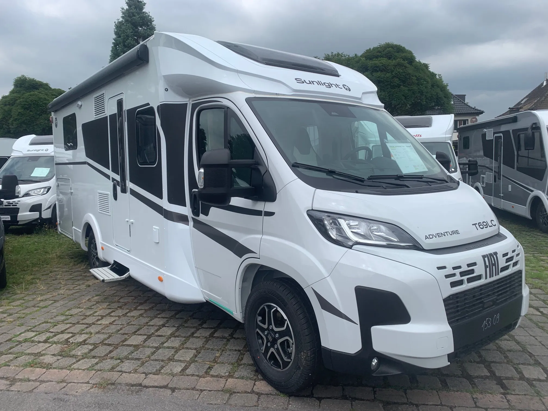 - Adventure Ausstattung 69LC (Fiat Ducato 3.500 kg | 2.2 Multijet | 103 kW | 140 PS Euro 6 | 6-Gang-Schaltgetriebe, Chassisfarbe Weiß, Adventure Beklebung, Wohnwelt Adventure, Design Applikation Heck, Fenster in Fronthaube, Rahmenfenster, 2. Außenstauraumklappe (Größe modellabhängig), Großer Kühlschrank 156 l mit separatem Frosterfach 29 l, Bettenumbau im Bereich Sitzgruppe, Paket One Black (Markise, Fahrradträger 3-fach), Bridge Light, Komfort Eingangstür mit Fenster, Fliegengittertür (einteilig), Panoramadachhaube 70 x 50 cm, Klarglasdachhaube 40 x 40 cm, Stoßfänger lackiert, Skid Plate Schwarz, Nebelscheinwerfer, Lenkrad & Schaltknauf in Lederausführung, Luftauslässe mit Applikationen Silber (Techno-Trim), 16" Alufelgen Bi-Color)