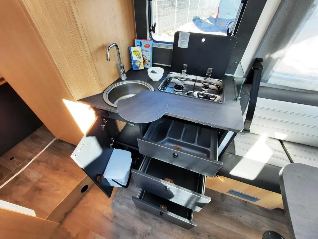 Chassisfarbe Weiß, Stoßfänger lackiert, 16“ Alufelgen, Ganzjahresreifen, Wohnwelt Adventure, Rahmenfenster, 2. Außenstauraumklappe, großer Kühlschrank mit separatem Frosterfach, Umbau Sitzgruppe, Markise, Fahrradträger, Tempomat, Eco-Pack Start & Stop Funktion inkl. Booster, Klimaanlage Fahrerhaus manuell, Fahrer- und Beifahrerairbag, ABS, ESP, ESC inkl. ASR und Hillholder, elektrische Fensterheber und Zentralverriegelung im Fahrerhaus, Außenspiegel elektrisch und beheizt, Dieseltank 60L, Getränkehalter in der Mittelkonsole, Fahrer- und Beifahrersitz drehbar, Radiovorbereitung mit Lautsprechern, 7-Jahre-Dichtigkeitsgarantie, Ausstellfenster doppeltverglast mit Verdunklungsrollo und Fliegenschutz, elektrische Trittstufe, Zuladung Heckgarage bis zu 150kg, Isofix für 2 Plätze, LED-Beleuchtung integriert unter den Dachschränken, LED-Außenleuchte, Combi 6 Gasheizung, 2-Flammen-Kocher und vielem mehr*