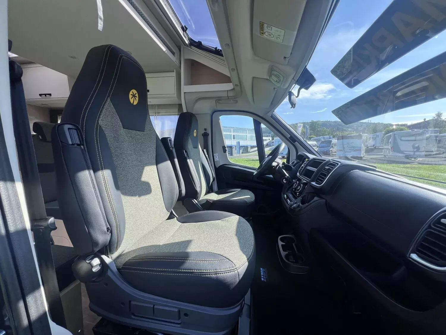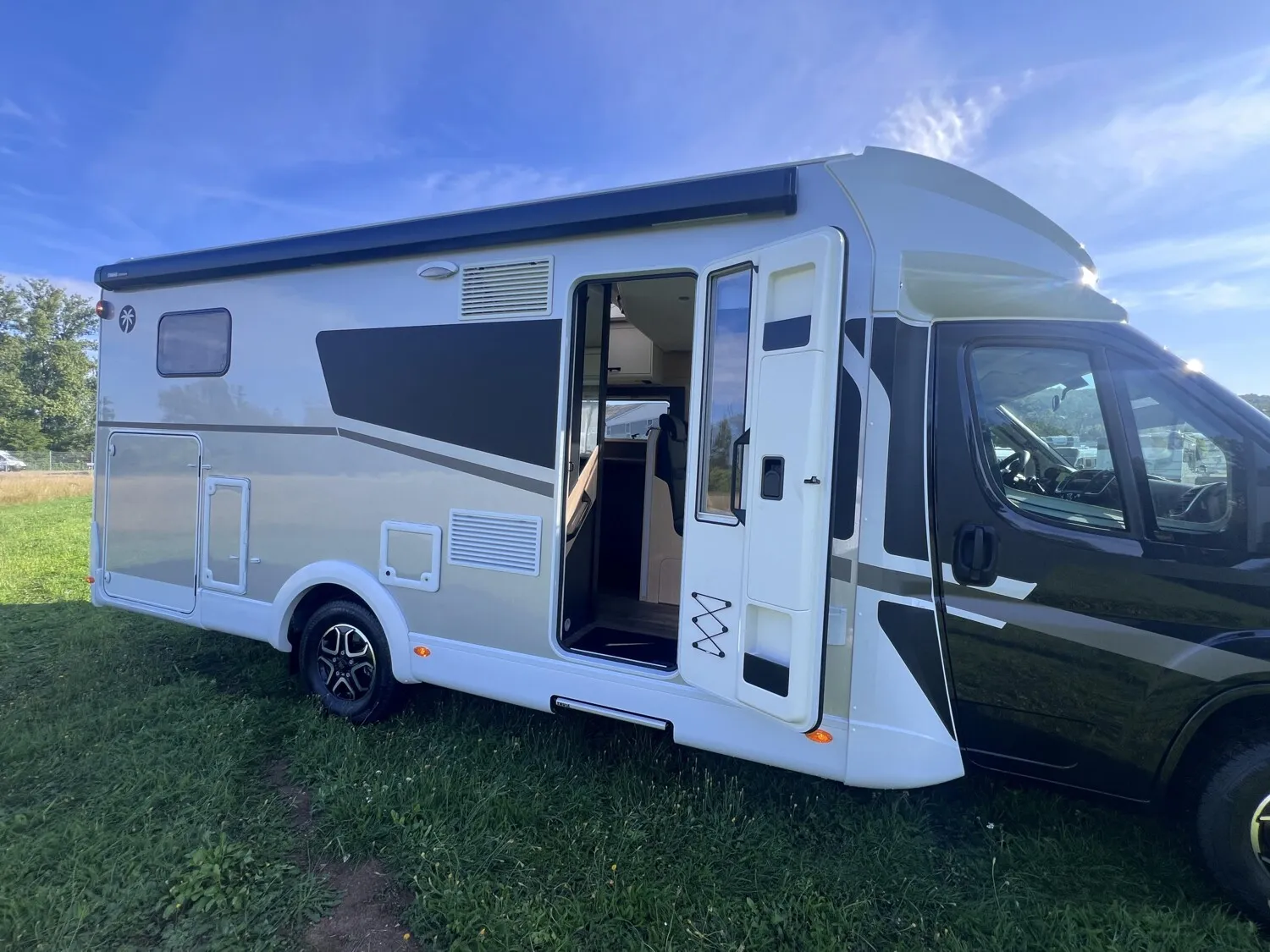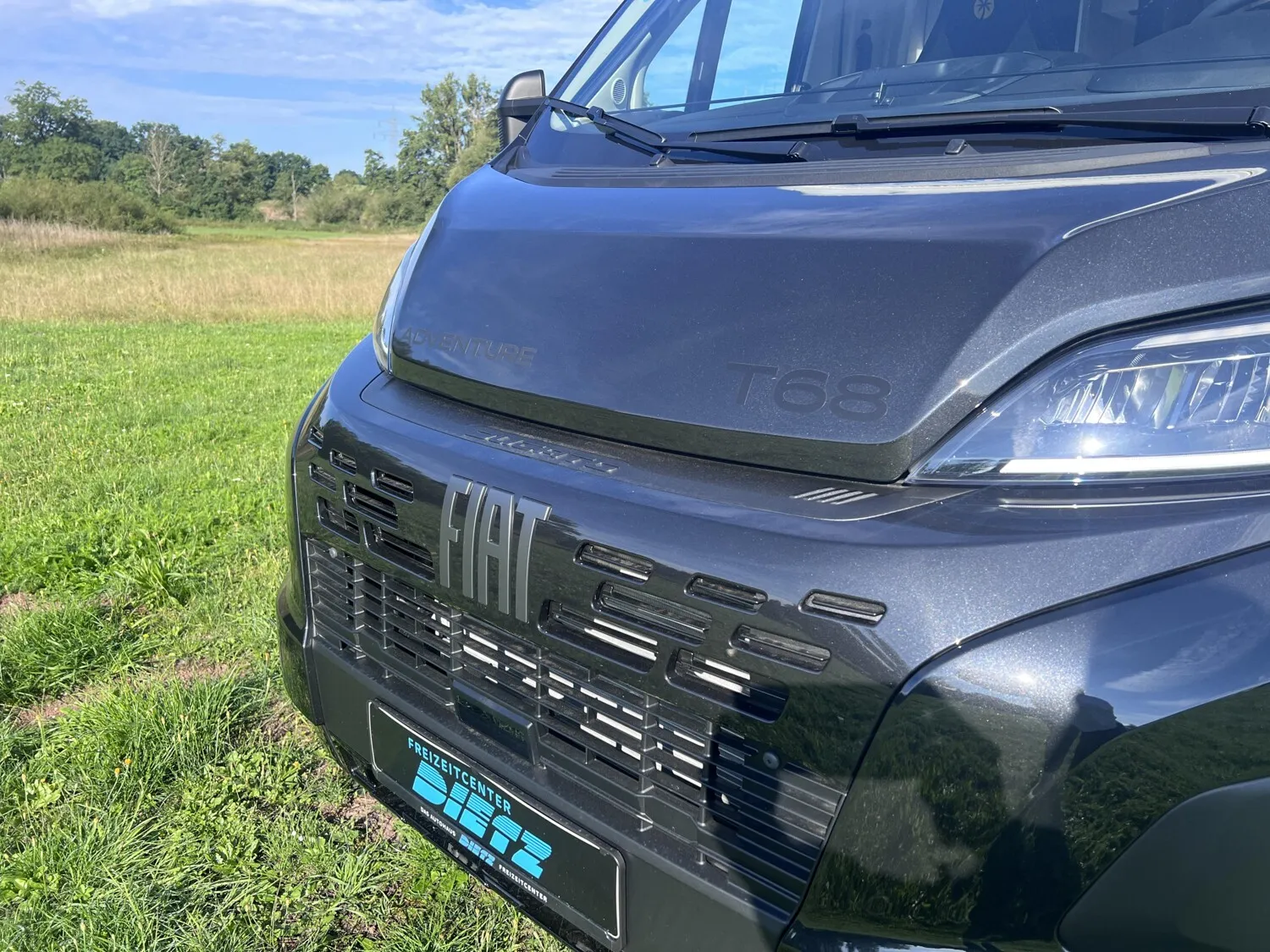 - Adventure Ausstattung 68 (Fiat Ducato 3.500 kg | 2.2 Multijet | 103 kW | 140 PS Euro 6 | 6-Gang-Schaltgetriebe, Chassisfarbe Weiß, Adventure Beklebung, Wohnwelt Adventure, Design Applikation Heck, Fenster in Fronthaube, Rahmenfenster, 2. Außenstauraumklappe (Größe modellabhängig), Großer Kühlschrank 156 l mit separatem Frosterfach 29 l, Bettenumbau Einzelbett zu Doppelbett, Paket One Black (Markise, Fahrradträger 3-fach), Bridge Light, Komfort Eingangstür mit Fenster, Fliegengittertür (einteilig), Panoramadachhaube 70 x 50 cm, Klarglasdachhaube 40 x 40 cm, Stoßfänger lackiert, Skid Plate Schwarz, Nebelscheinwerfer, Lenkrad & Schaltknauf in Lederausführung, Luftauslässe mit Applikationen Silber (Techno-Trim), 16" Alufelgen Bi-Color)