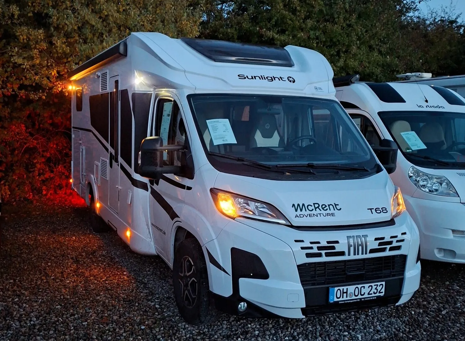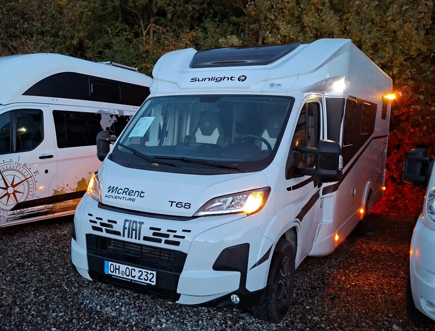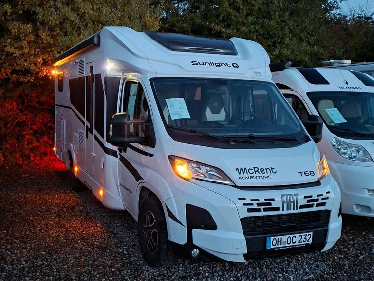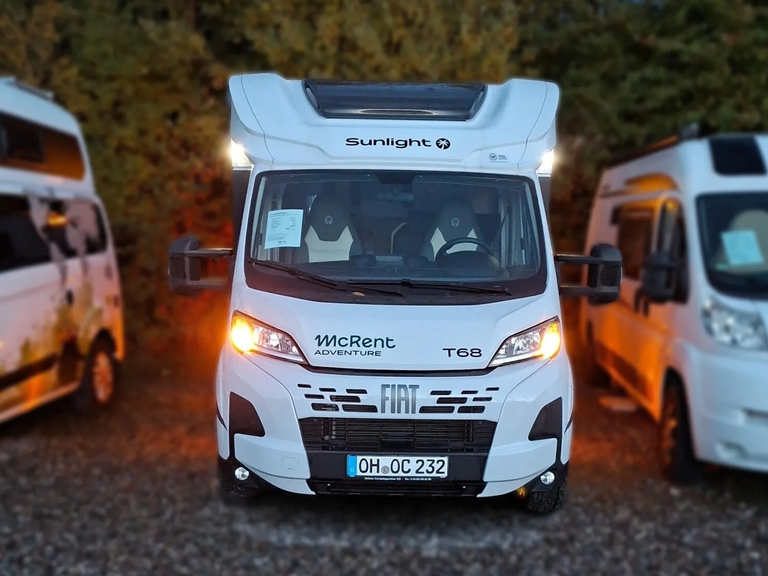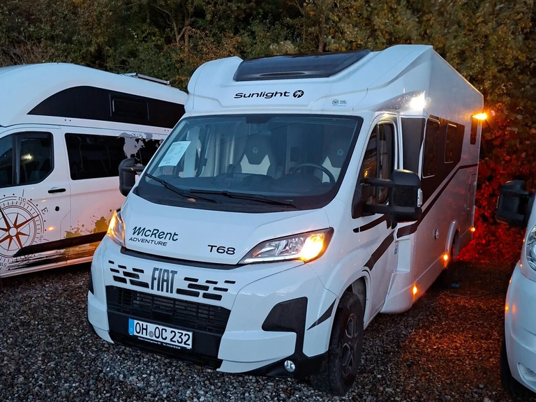 - Adventure Edition Teilintegriert 2025 (Fiat Ducato 3.500 kg - 2.2 Multijet - 103 kW / 140 PS Euro 6 - 6-Gang-Schaltgetriebe, Chassisfarbe Weiß, Adventure Beklebung, Wohnwelt Adventure, Design Applikation Heck, Fenster in Fronthaube, Rahmenfenster, 2. Außenstauraumklappe (Größe modellabhängig) (T 67S, T 67, T 68, T 68C, T 69LC), großer Kühlschrank 156 l mit separatem Frosterfach 29 l (T 67S, T 67, T 68, T 68C, T 69LC), Bettenumbau im Bereich Sitzgruppe (T 69LC), Bettenumbau Einzelbett zu Doppelbett (T 67S, T 67, T 68, T 68C), Paket One Black (Markise, Fahrradträger 3-fach), Basic Paket (Bridge Light, Komfort Eingangstür mit Fenster, Fliegengittertür (einteilig), Panoramadachhaube 70 x 50 cm, Klarglasdachhaube 40 x 40 cm), Paket Stoßfänger lackiert (Stoßfänger lackiert, Skid Plate Schwarz, Nebelscheinwerfer), Paket Alufelgen Bicolor (Lenkrad & Schaltknauf in Lederausführung, Luftauslässe mit Applikationen Silber (Techno-Trim), 16 Zoll Alufelgen Bi-Color))