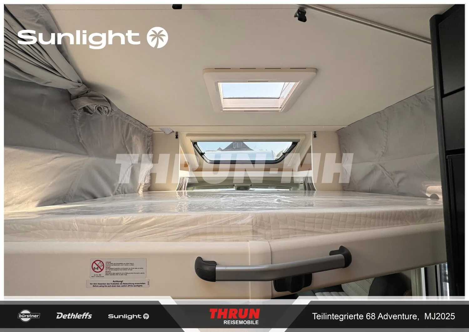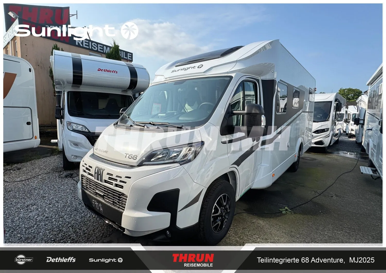- Adventure Ausstattung 68 (Fiat Ducato 3.500 kg | 2.2 Multijet | 103 kW | 140 PS Euro 6 | 6-Gang-Schaltgetriebe, Chassisfarbe Weiß, Adventure Beklebung, Wohnwelt Adventure, Design Applikation Heck, Fenster in Fronthaube, Rahmenfenster, 2. Außenstauraumklappe (Größe modellabhängig), Großer Kühlschrank 156 l mit separatem Frosterfach 29 l, Bettenumbau Einzelbett zu Doppelbett, Paket One Black (Markise, Fahrradträger 3-fach), Bridge Light, Komfort Eingangstür mit Fenster, Fliegengittertür (einteilig), Panoramadachhaube 70 x 50 cm, Klarglasdachhaube 40 x 40 cm, Stoßfänger lackiert, Skid Plate Schwarz, Nebelscheinwerfer, Lenkrad & Schaltknauf in Lederausführung, Luftauslässe mit Applikationen Silber (Techno-Trim), 16" Alufelgen Bi-Color)