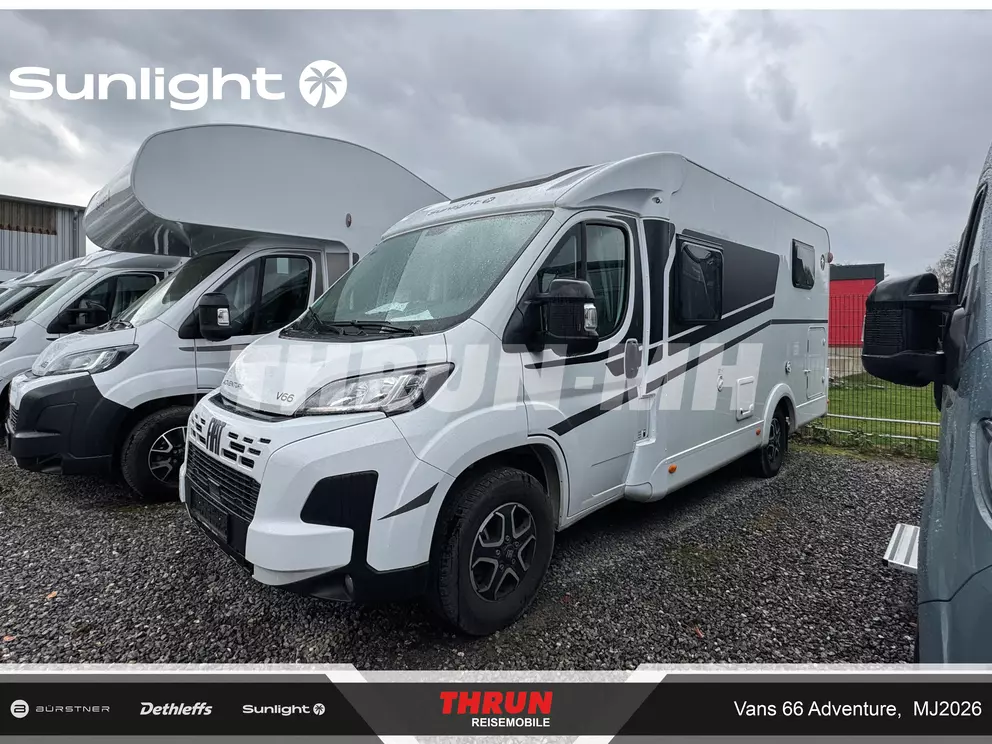 - Adventure Ausstattung 66 (Fiat Ducato 3.500 kg | 2.2 Multijet | 103 kW | 140 PS Euro 6 | 6-Gang-Schaltgetriebe, Chassisfarbe Weiß, Adventure Beklebung, Wohnwelt Adventure, Fenster in Fronthaube, 2. Außenstauraumklappe (Größe modellabhängig), Bettenumbau Einzelbett zu Doppelbett, Paket One Black (Markise, Fahrradträger 3-fach), Bridge Light, Fliegengittertür (einteilig), Spiegel mit Garderobenhaken, Panoramadachhaube 70 x 50 cm, Klarglasdachhaube 40 x 40 cm, Stoßfänger lackiert, Skid Plate Schwarz, Nebelscheinwerfer, Lenkrad & Schaltknauf in Lederausführung, Luftauslässe mit Applikationen Silber (Techno-Trim), 16" Alufelgen Bi-Color)