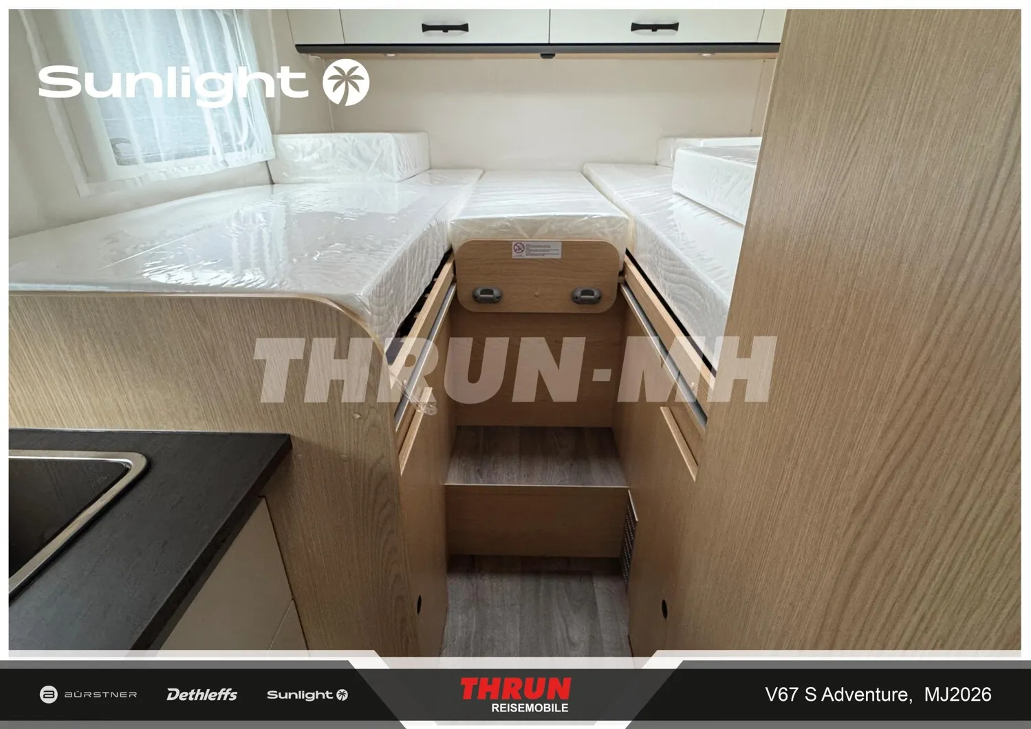 - Aktionsprämie "Ready to Roll" (Der Aktionszeitraum der Ready to Roll Aktion erstreckt sich auf abgeschlossene Kaufverträge vom 15.01.2026 ,bis einschließlich 31.03.2026. Die Aktion ist gültig bei allen teilnehmenden Handelspartnern von SUNLIGHT und gilt ausschließlich für den Kauf von Neufahrzeugen. Der Aktionswert variiert je nach Baureihe und beinhaltet die Mehrwertsteuer. Sunlight behält sich das Recht vor, Aktionsbedingungen jederzeit zu ändern sowie die Aktion vorzeitig zu beenden. Kaufverträge innerhalb der Aktion sind vom Widerruf ausgeschlossen. )