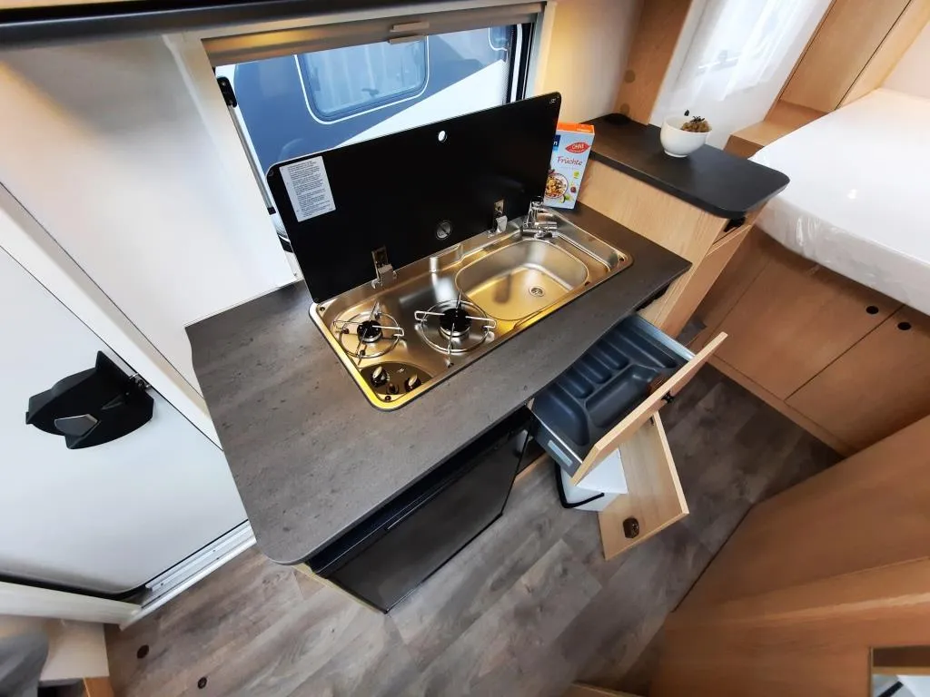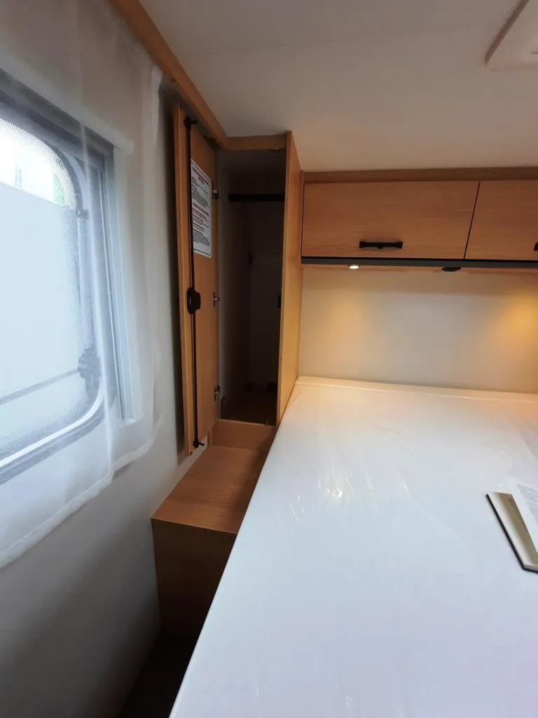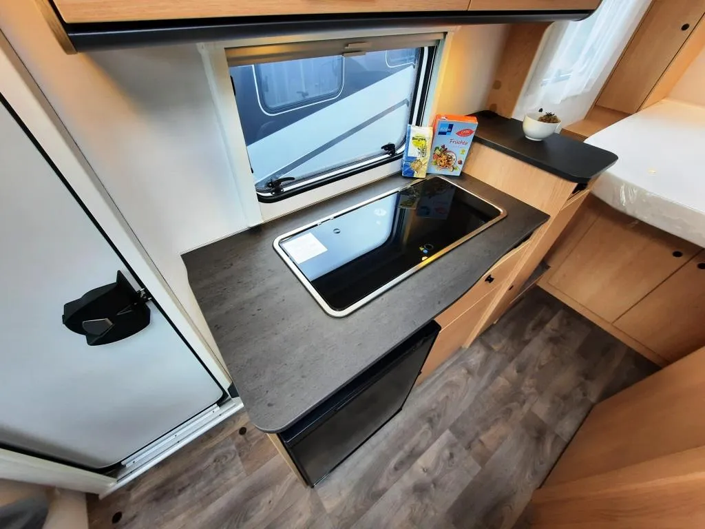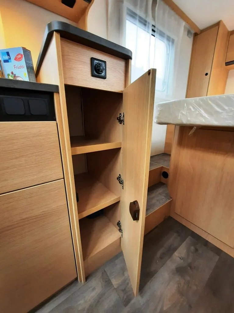 Ganzjahresreifen, Stahlfelge 15 Zoll, manuelle Klimaanlage FH, Tempomat, Eco-Pack, Fahrer- und Beifahrerairbag, ABS, ESP inkl. ASR und Hillholder, elek. Fensterheber und ZV im Fahrerhaus, Multifunktionslenkrad, Außenspiegel elektrisch und beheizt, Captain-Chair, Dieseltank 60l, Dach- und Heckaußenhaut aus GFK, Ausstellfenster doppeltverglast mit Verdunkelungsrollos und Fliegenschutz, LED-Wohnraumleuchte, elektrische Trittstufe, Isofix für 2 Plätze, Combi 4 Gasheizung, Kühlschrank 78l mit Gefrierfach 11l, 2-Flammen-Kocher, Wassertank inkl. Boiler 116 l, Abwassertank 92 l, 7 Jahre Dichtigkeitsgarantie*