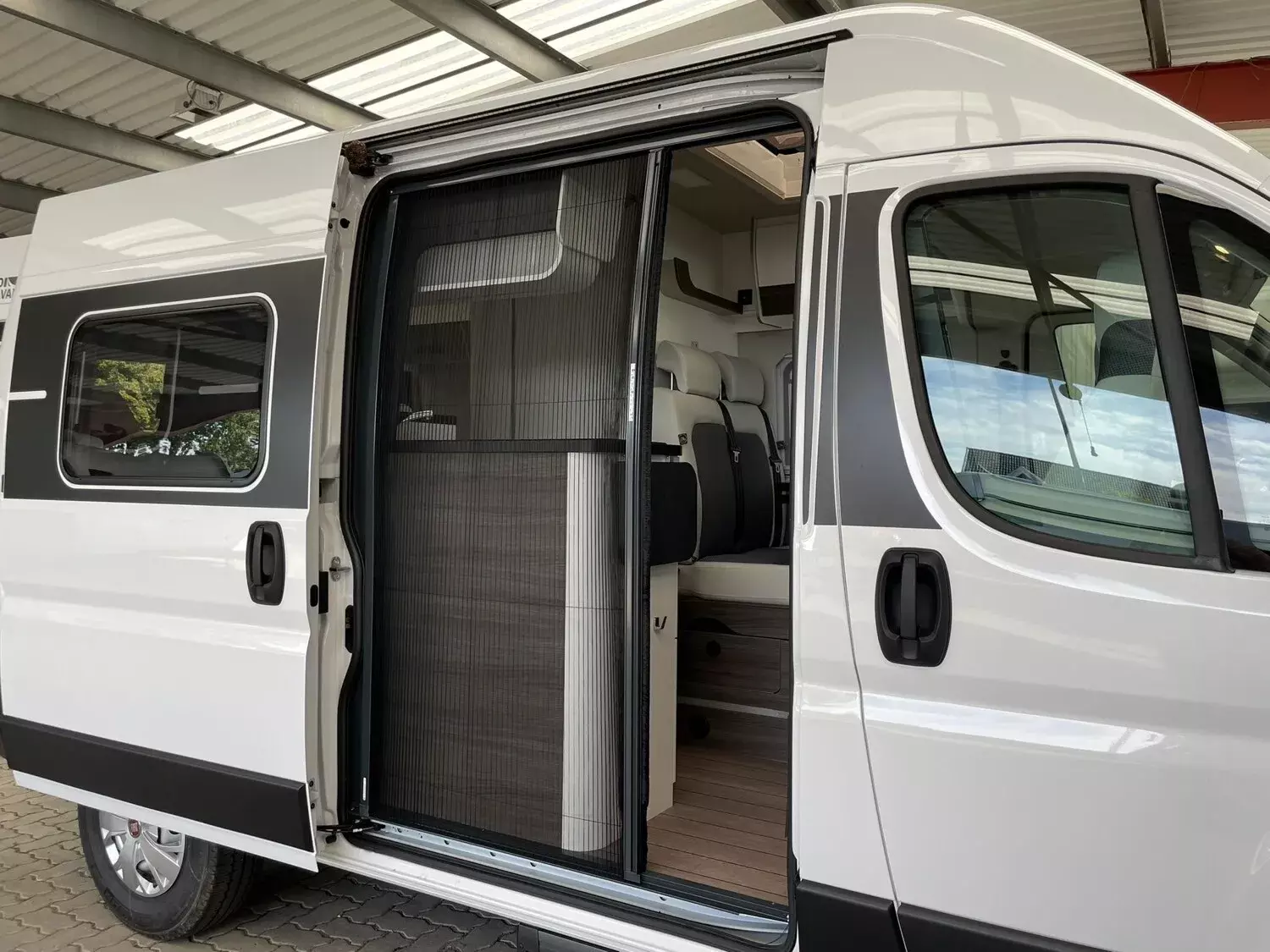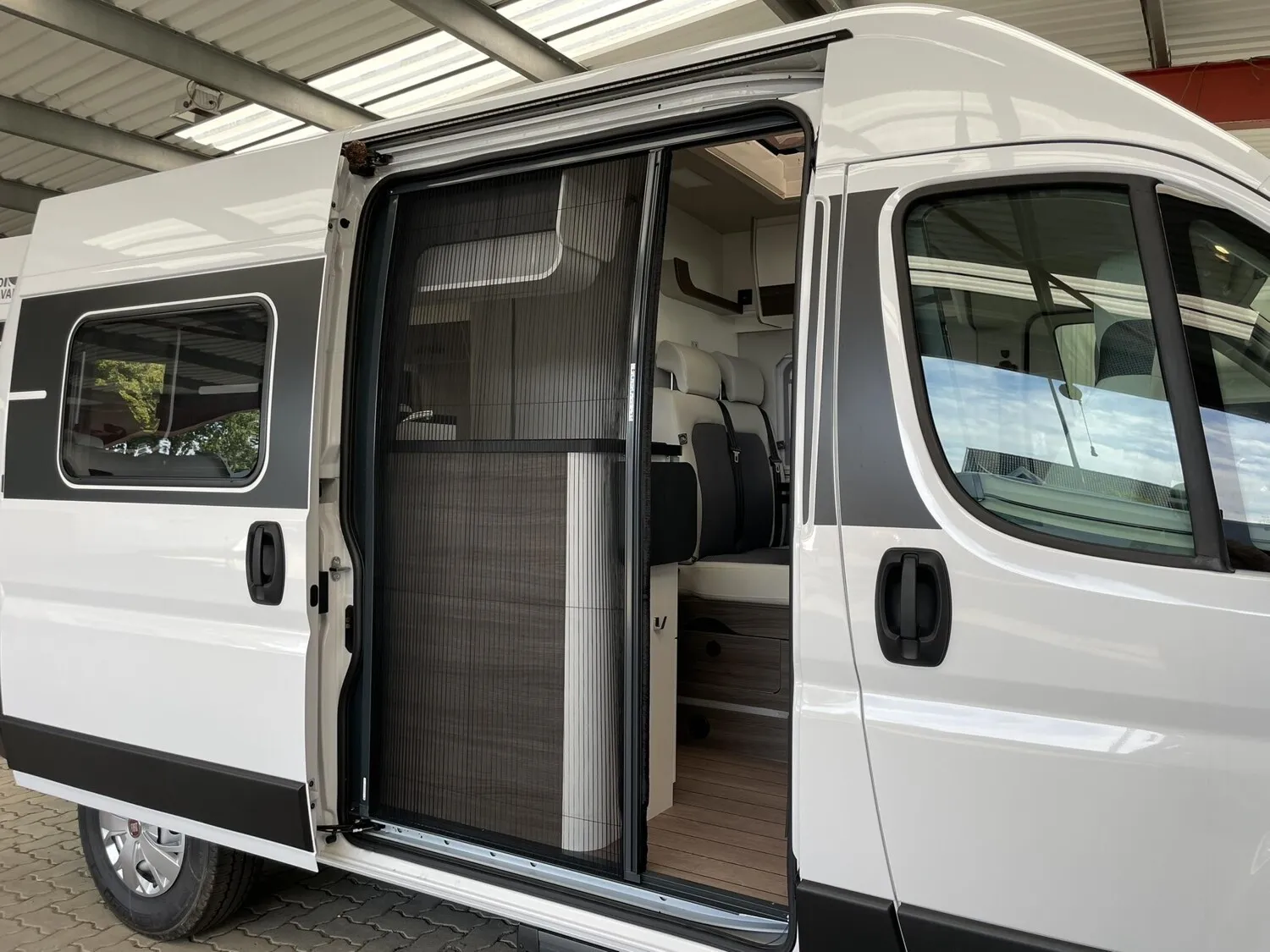 - Comfort Paket: Kraftstofftank 90l, REMIS Fahrerhausverdunkelung für Front- und Seitenscheibe, Fliegenschutztür an der Schiebetür, Vorverkabelung SAT / Solar, Vorverkabelung Rückfahrkamera, 16" –Stahlräder, 16" , Radblenden, USB-Ladesteckdose, Lederlenkrad mit Schaltknauf in Leder, Lenkradfernbedienung, Tasche im Bettbereich, Tisch mit ausschwenkbarer Tischverlängerung, Isofix, Sitzbank seitlich ausziehbar für komfortablere Sitzposition, Armaturentafel in Techno Trim silber, Truma CP-Plus-Bedienteil, zusätzliche Steckdosen 2x 230V / 1x 12V