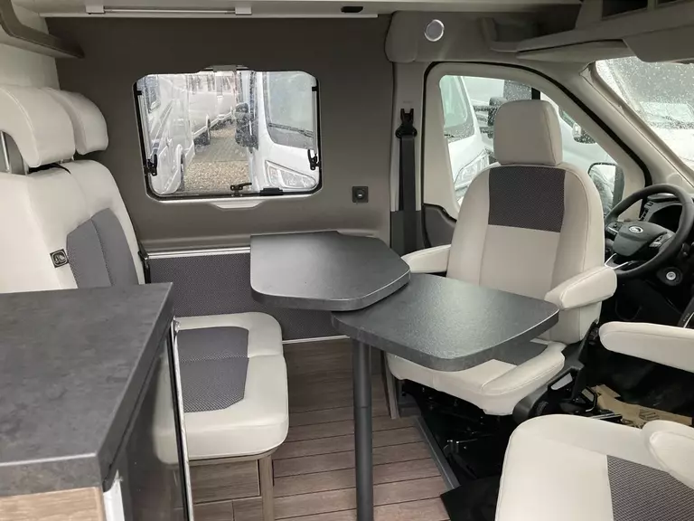 - Comfort Paket (Front- und Seitenscheibenverdunklung, Zusatzlautsprecher im Schlaf- und Wohnbereich (2 Stück), Vorbereitung Rückfahrkamera, Insektenschutztür, Tisch ausdrehbar, einzeln (ohne Gästebett), Sitzbank ausziehbar, ISOFIX-System für einen Kindersitz (2 Positionen möglich), TRUMA iNet X Heizungsbedienpanel, USB-Steckdose (1 Stück) in der Sitzgruppe, USB-Steckdose (1 Stück) im Küchenbereich, 230 V SCHUKO-Steckdose zusätzlich in der Sitzgruppe (1 Stück), 230 V SCHUKO-Steckdose zusätzlich im Heck (1 Stück), 12 V Powersteckdose (1 Stück), Kabelvorverlegung für Solar- und Sat-Anlagen)