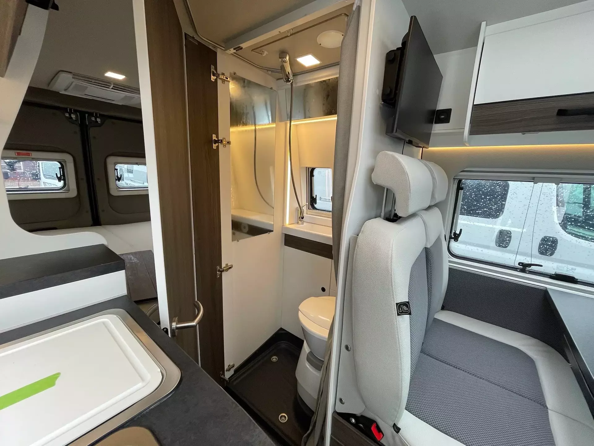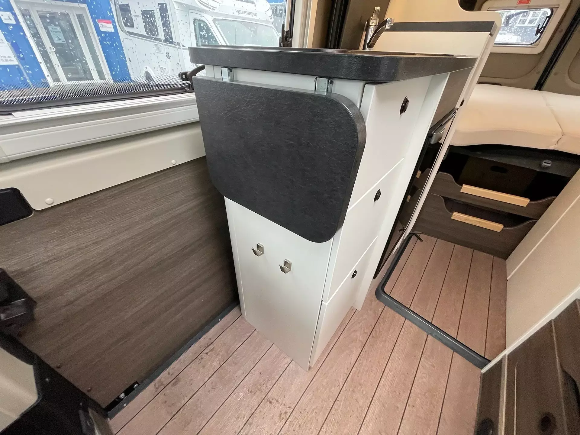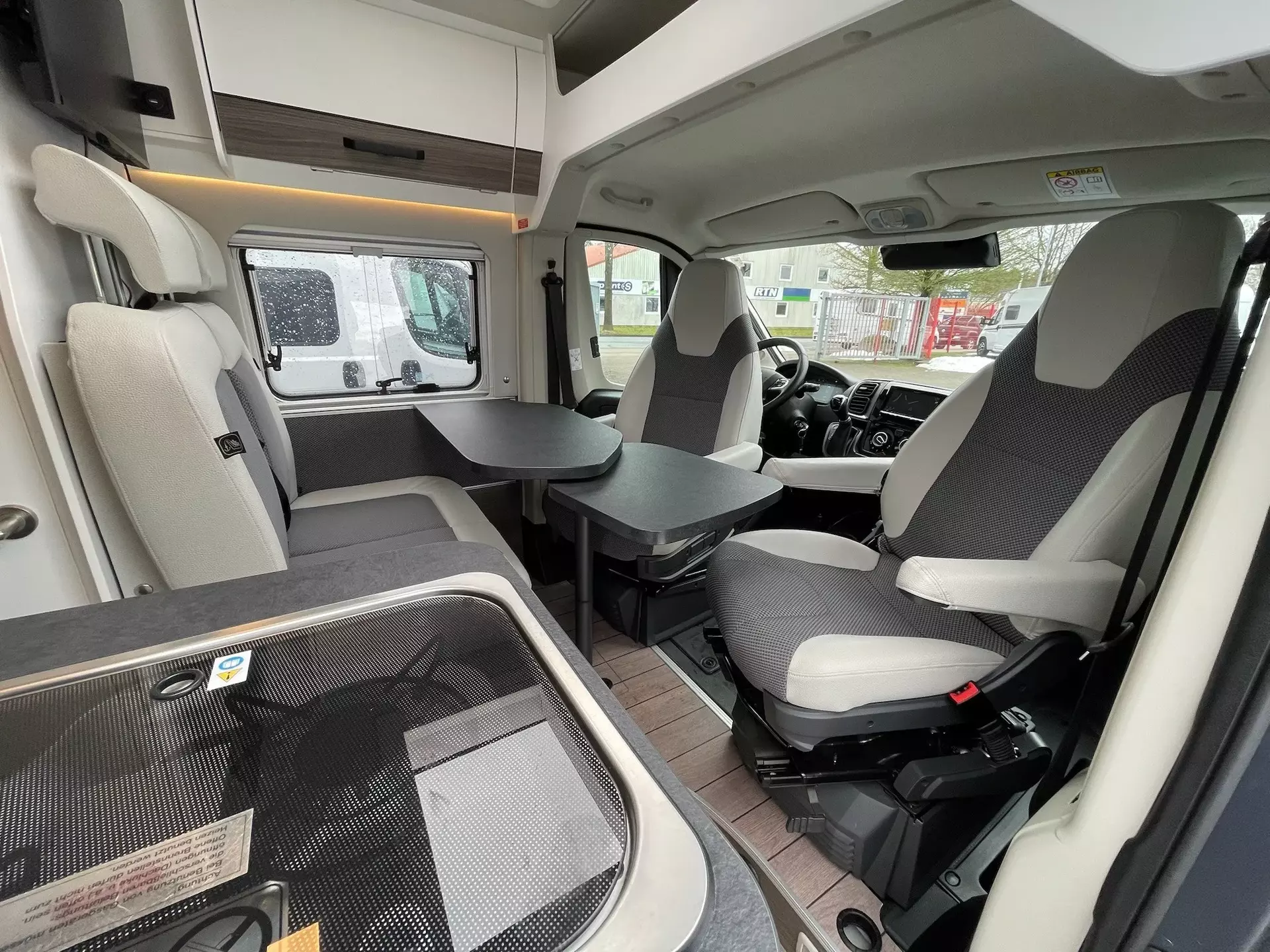 - Comfort Paket: Grip Control inkl. Hill Descent Control (intelligentes Elektronikdifferential traction+), Kraftstofftank 90l, REMIS Fahrerhausverdunkelung für Front- und Seitenscheiben, Fliegenschutztür an der Schiebetür, Vorverkabelung SAT / Solar, Vorverkabelung Rückfahrkamera (3 Cinch Kabel), USB-Ladesteckdose, Lederlenkrad mit Schaltknauf in Leder, Lenkradfernbedienung, Taschen im Bettbereich, Tisch mit ausschwenkbarer Tischverlängerung, Isofix Kindersicherung für Sitzbank, Sitzbank seitlich ausziehbar für komfortablere Sitzposition, Armaturentafel in Techno Trim silber, Truma CP-Plus-Bedie