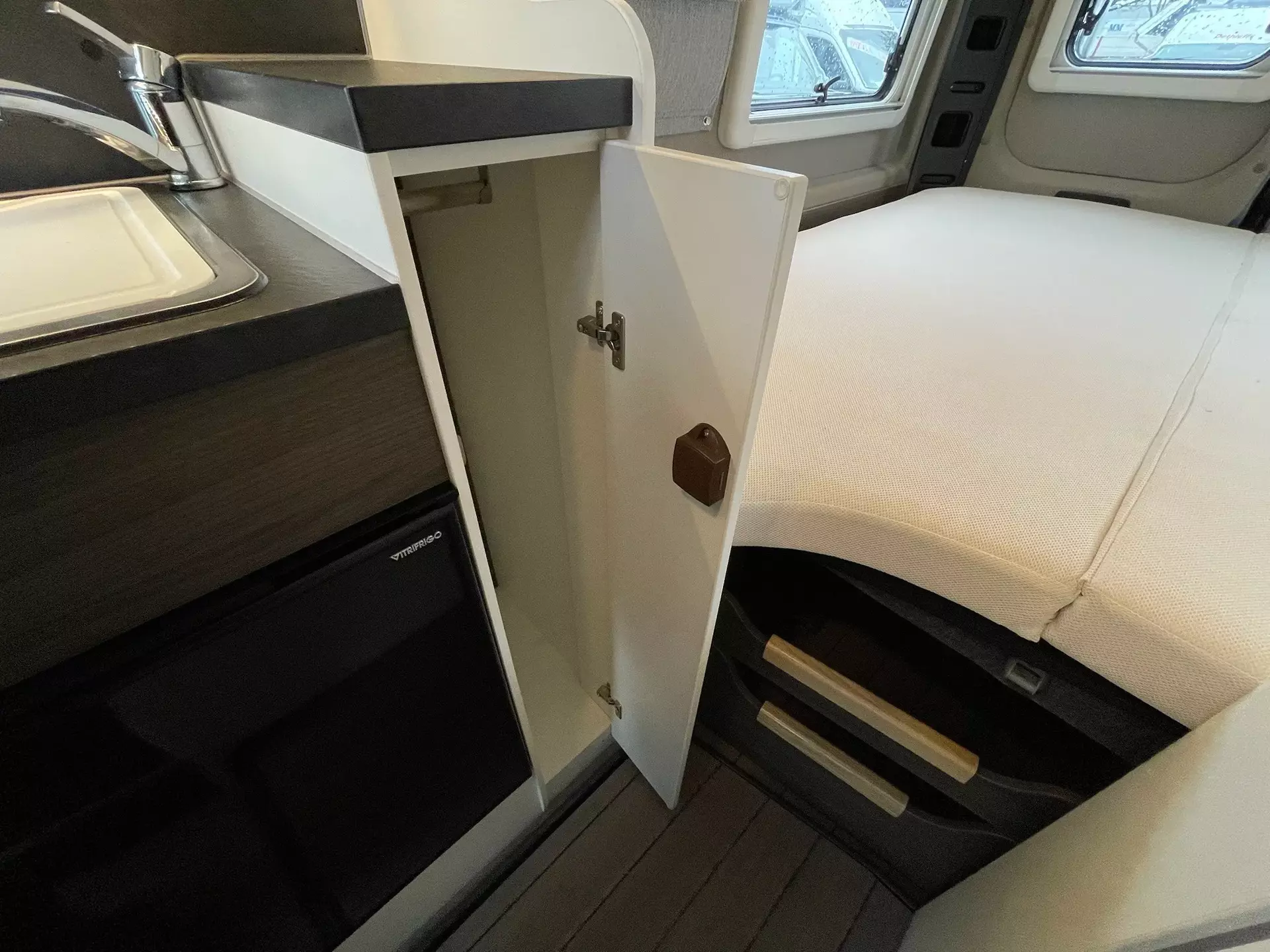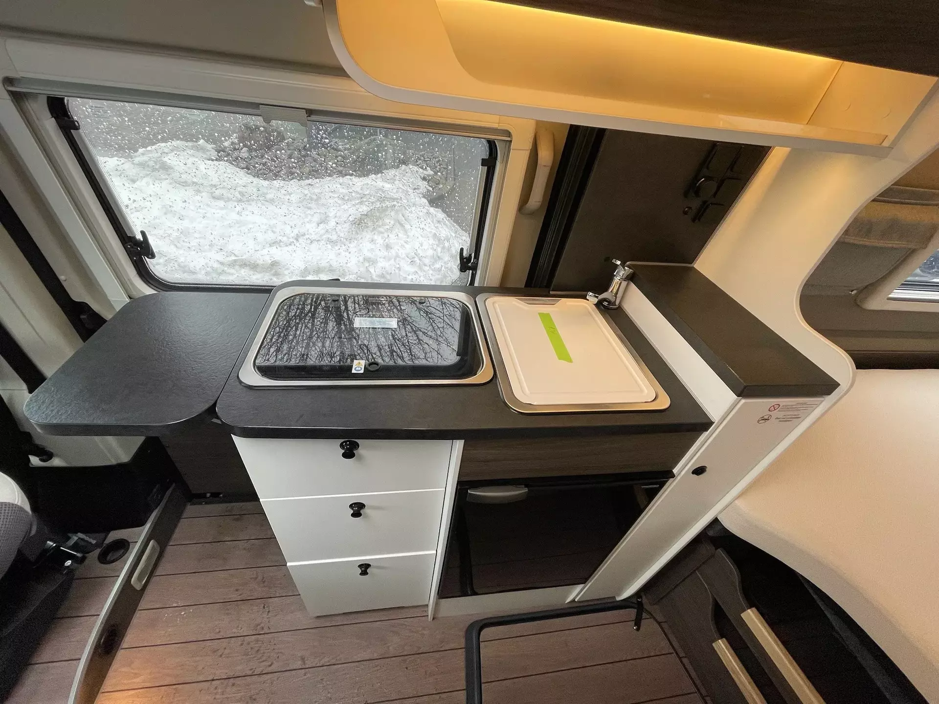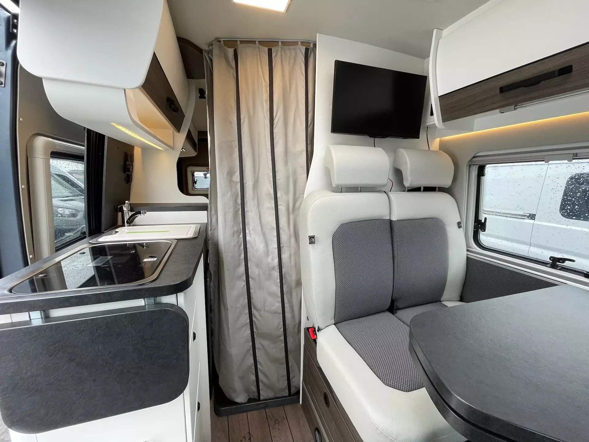 - Comfort Paket: Grip Control inkl. Hill Descent Control (intelligentes Elektronikdifferential traction+), Kraftstofftank 90l, REMIS Fahrerhausverdunkelung für Front- und Seitenscheiben, Fliegenschutztür an der Schiebetür, Vorverkabelung SAT / Solar, Vorverkabelung Rückfahrkamera (3 Cinch Kabel), USB-Ladesteckdose, Lederlenkrad mit Schaltknauf in Leder, Lenkradfernbedienung, Taschen im Bettbereich, Tisch mit ausschwenkbarer Tischverlängerung, Isofix Kindersicherung für Sitzbank, Sitzbank seitlich ausziehbar für komfortablere Sitzposition, Armaturentafel in Techno Trim silber, Truma CP-Plus-Bedie