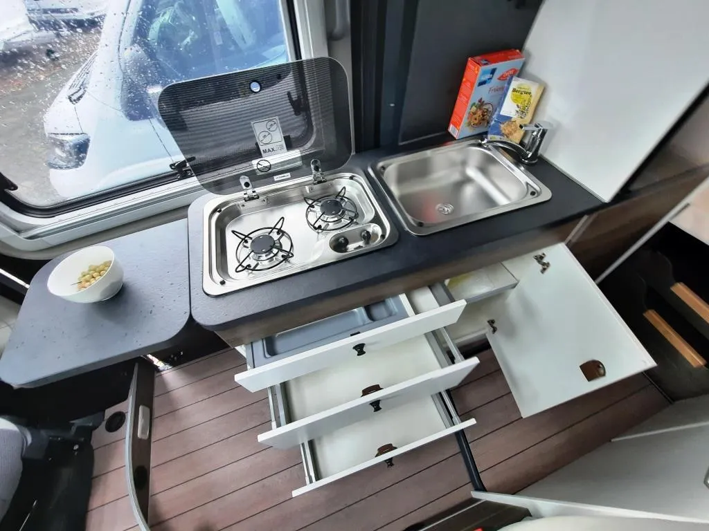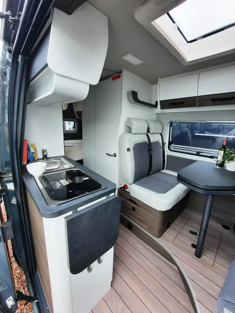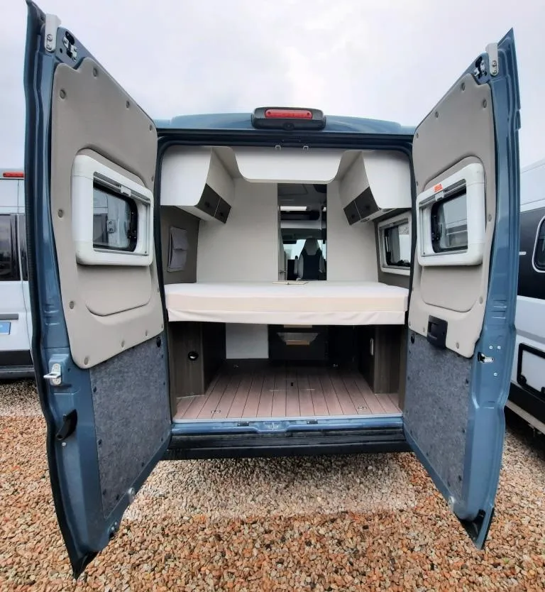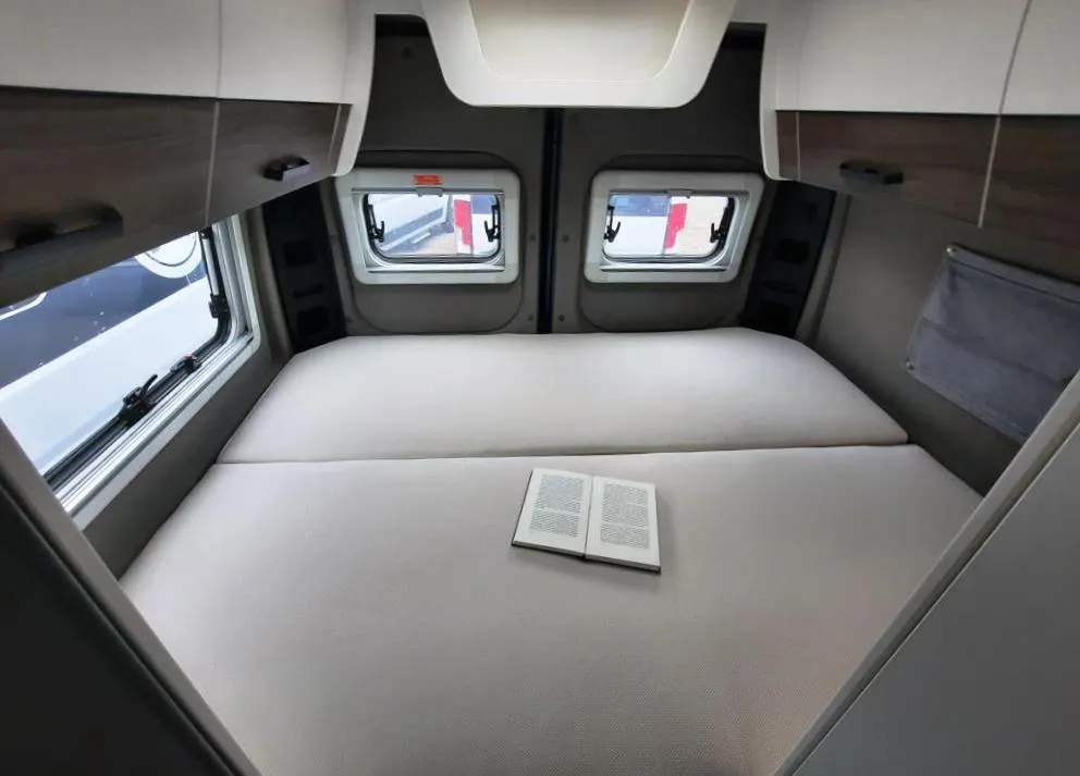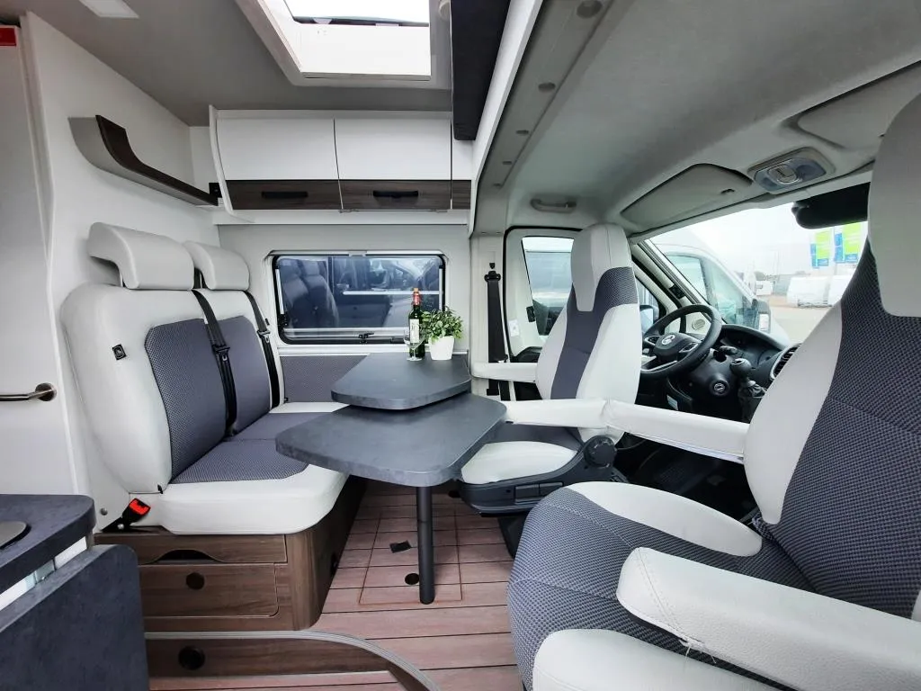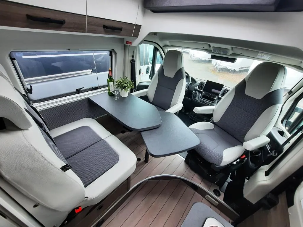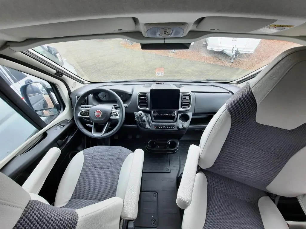 - Comfort-Paket (Grip Control inkl. Hill Descent Control (intelligentes Elektronikdifferential traction+), Kraftstofftank 90l, Außenspiegel elektrisch verstell- und beheizbar, Original Fiat Pilotensitze mit verstellbaren Armlehnen, Radiovorbereitung mit Lautsprecher im Fahrerhaus und Wohnraum, REMIS Fahrerhausverdunkelung Fliegenschutztür an der Schiebetür, Vorverkabelung SAT / Solar, Vorverkabelung Rückfahrkamera (3 Cinch Kabel), 16" -Stahlräder (225/75R16C ; 6Jx16") 16" -Radblenden, USB-Ladesteckdose, Lederlenkrad mit Schaltknauf in Leder, Lenkradfernbedienung, Tasche(n) im Bettbereich, Tisch mit ausschwenkbarer Tischverlängerung, Isofix , Sitzbank seitlich ausziehbar für komfortablere Sitzposition, Armaturentafel in Techno Trim silber, Truma CP-Plus-Bedienteil, Zusätzliche Steckdosen 2x 230V / 1x 12V)