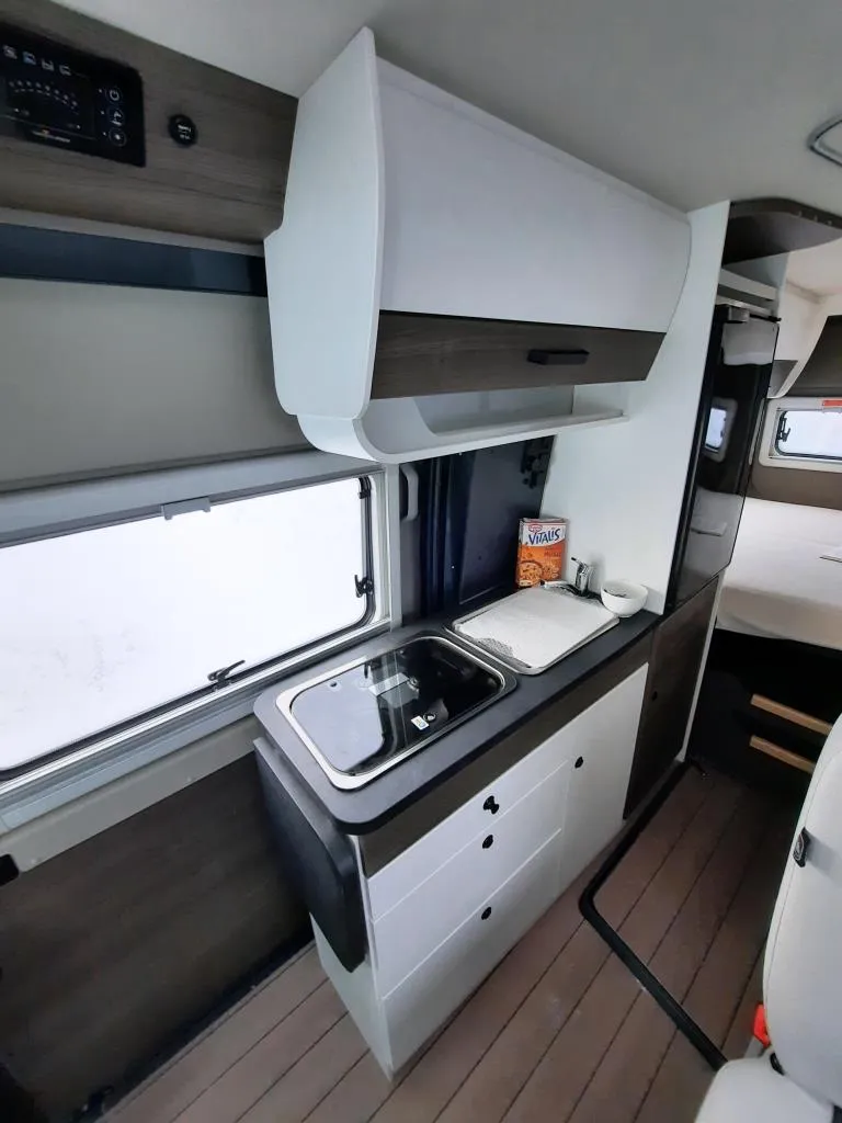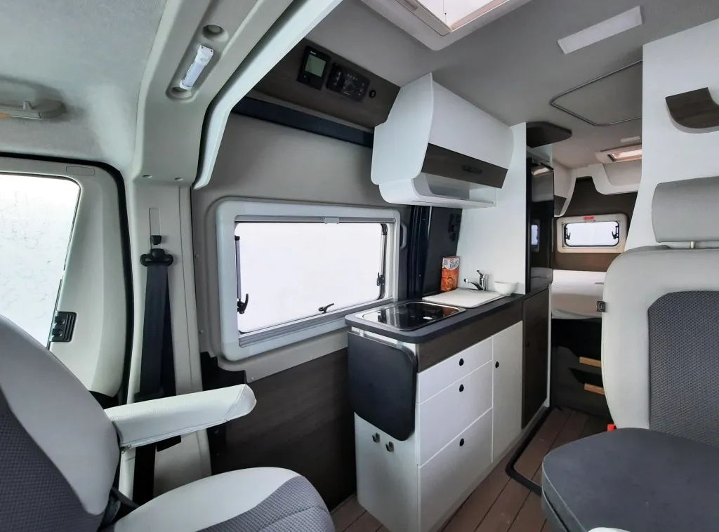- Comfort-Paket (Grip Control inkl. Hill Descent Control (intelligentes Elektronikdifferential traction+), Kraftstofftank 90l, Außenspiegel elektrisch verstell- und beheizbar, Original Fiat Pilotensitze mit verstellbaren Armlehnen, Radiovorbereitung mit Lautsprecher im Fahrerhaus und Wohnraum, REMIS Fahrerhausverdunkelung Fliegenschutztür an der Schiebetür, Vorverkabelung SAT / Solar, Vorverkabelung Rückfahrkamera (3 Cinch Kabel), 16" -Stahlräder (225/75R16C ; 6Jx16") 16" -Radblenden, USB-Ladesteckdose, Lederlenkrad mit Schaltknauf in Leder, Lenkradfernbedienung, Tasche(n) im Bettbereich, Tisch mit ausschwenkbarer Tischverlängerung, Isofix , Sitzbank seitlich ausziehbar für komfortablere Sitzposition, Armaturentafel in Techno Trim silber, Truma CP-Plus-Bedienteil, Zusätzliche Steckdosen 2x 230V / 1x 12V)