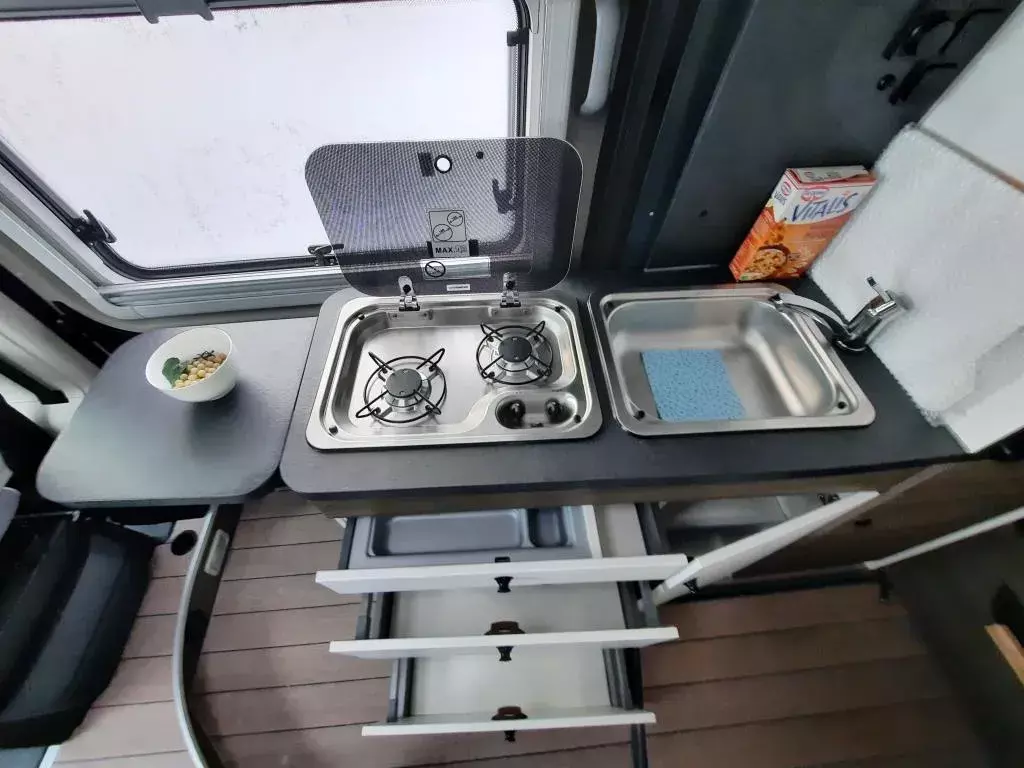 ABS, ESP, ASR, Hill Holder, verkleidete Drehkonsole für Fahrer- & Beifahrersitz, elektrische Fensterheber, Fahrer- & Beifahrerairbag, Höhenverstellung Fahrer- & Beifahrersitz, Dieseltank 75L, Tagfahrlicht, VANTourer Fahrerhausteppich, Ausstellfenster, elektrische Einstiegsstufe, Aufstiegshilfe Heckbett, Verdunklung & Mückenschutzrollos, Bordbatterie AGM 95 Ah, LED-Innenbeleuchtung, Abwassertank 85L, Frischwassertank 100L, Truma Combi D, 2-Flammen-Gaskocher, Kompressorkühlschrank 75L, Badfenster, u.v.m.*