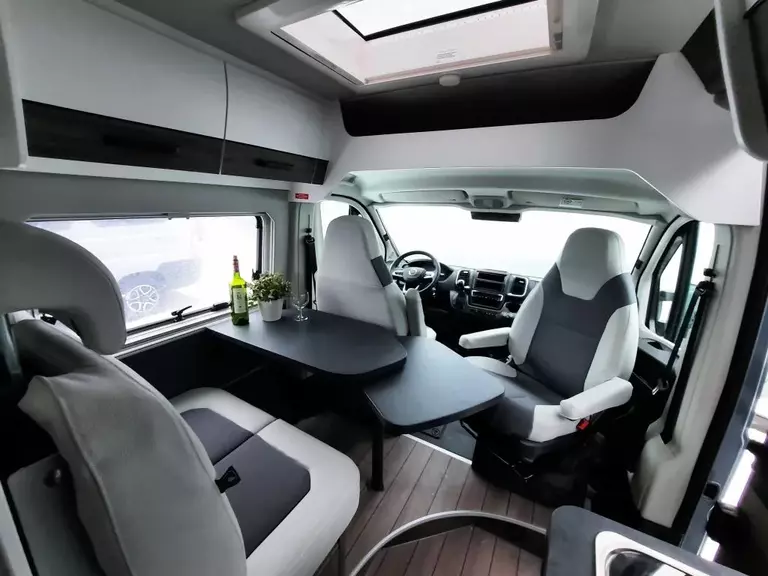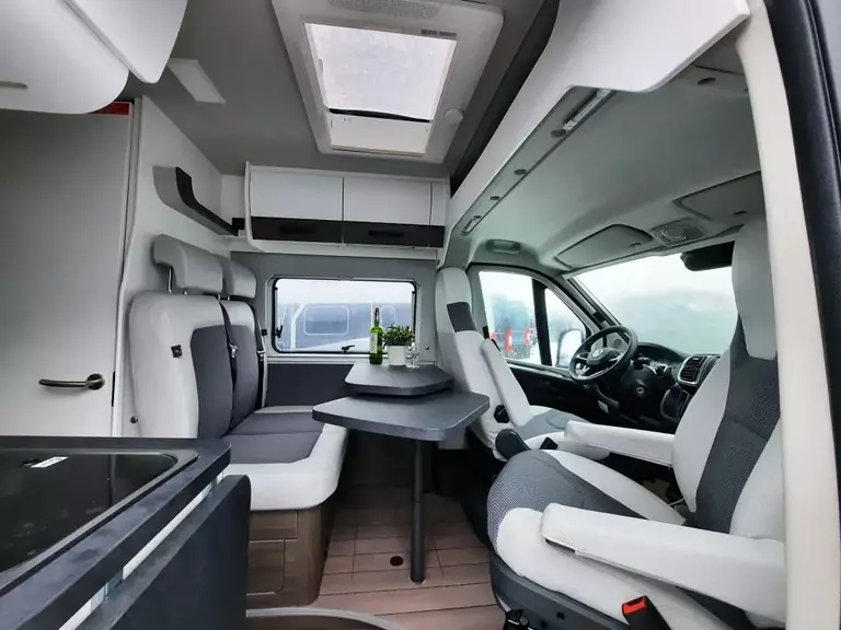- Comfort-Paket (Grip Control inkl. Hill Descent Control (intelligentes Elektronikdifferential traction+), Kraftstofftank 90l, Außenspiegel elektrisch verstell- und beheizbar, Original Fiat Pilotensitze mit verstellbaren Armlehnen, Radiovorbereitung mit Lautsprecher im Fahrerhaus und Wohnraum, REMIS Fahrerhausverdunkelung Fliegenschutztür an der Schiebetür, Vorverkabelung SAT / Solar, Vorverkabelung Rückfahrkamera (3 Cinch Kabel), 16" -Stahlräder (225/75R16C ; 6Jx16") 16" -Radblenden, USB-Ladesteckdose, Lederlenkrad mit Schaltknauf in Leder, Lenkradfernbedienung, Tasche(n) im Bettbereich, Tisch mit ausschwenkbarer Tischverlängerung, Isofix , Sitzbank seitlich ausziehbar für komfortablere Sitzposition, Armaturentafel in Techno Trim silber, Truma CP-Plus-Bedienteil, Zusätzliche Steckdosen 2x 230V / 1x 12V)