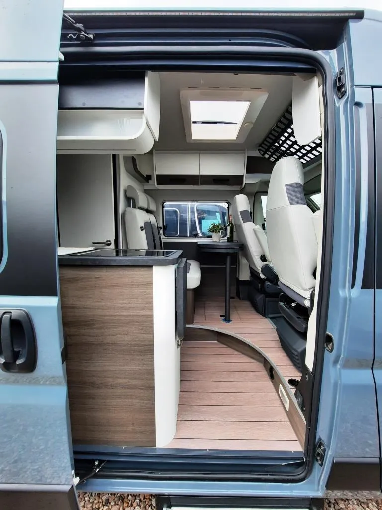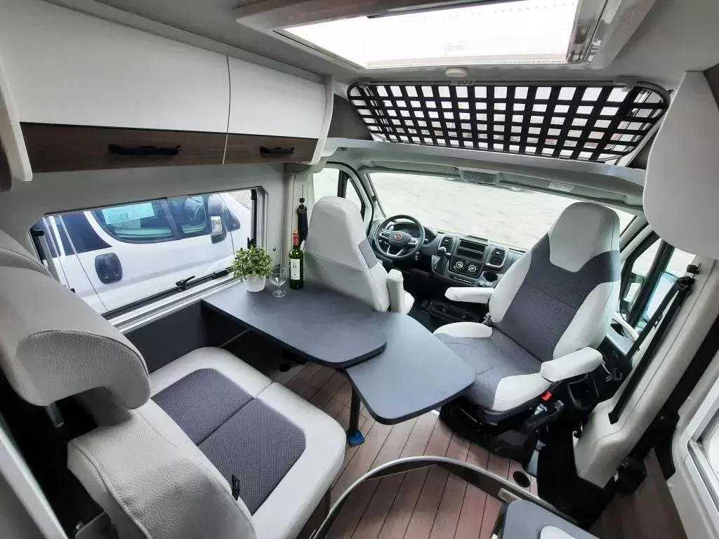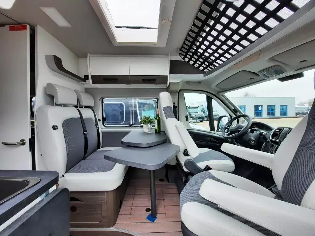 - Comfort-Paket (Grip Control inkl. Hill Descent Control (intelligentes Elektronikdifferential traction+), Kraftstofftank 90l, Außenspiegel elektrisch verstell- und beheizbar, Original Fiat Pilotensitze mit verstellbaren Armlehnen, Radiovorbereitung mit Lautsprecher im Fahrerhaus und Wohnraum, REMIS Fahrerhausverdunkelung Fliegenschutztür an der Schiebetür, Vorverkabelung SAT / Solar, Vorverkabelung Rückfahrkamera (3 Cinch Kabel), 16" -Stahlräder (225/75R16C ; 6Jx16") 16" -Radblenden, USB-Ladesteckdose, Lederlenkrad mit Schaltknauf in Leder, Lenkradfernbedienung, Tasche(n) im Bettbereich, Tisch mit ausschwenkbarer Tischverlängerung, Isofix , Sitzbank seitlich ausziehbar für komfortablere Sitzposition, Armaturentafel in Techno Trim silber, Truma CP-Plus-Bedienteil, Zusätzliche Steckdosen 2x 230V / 1x 12V)