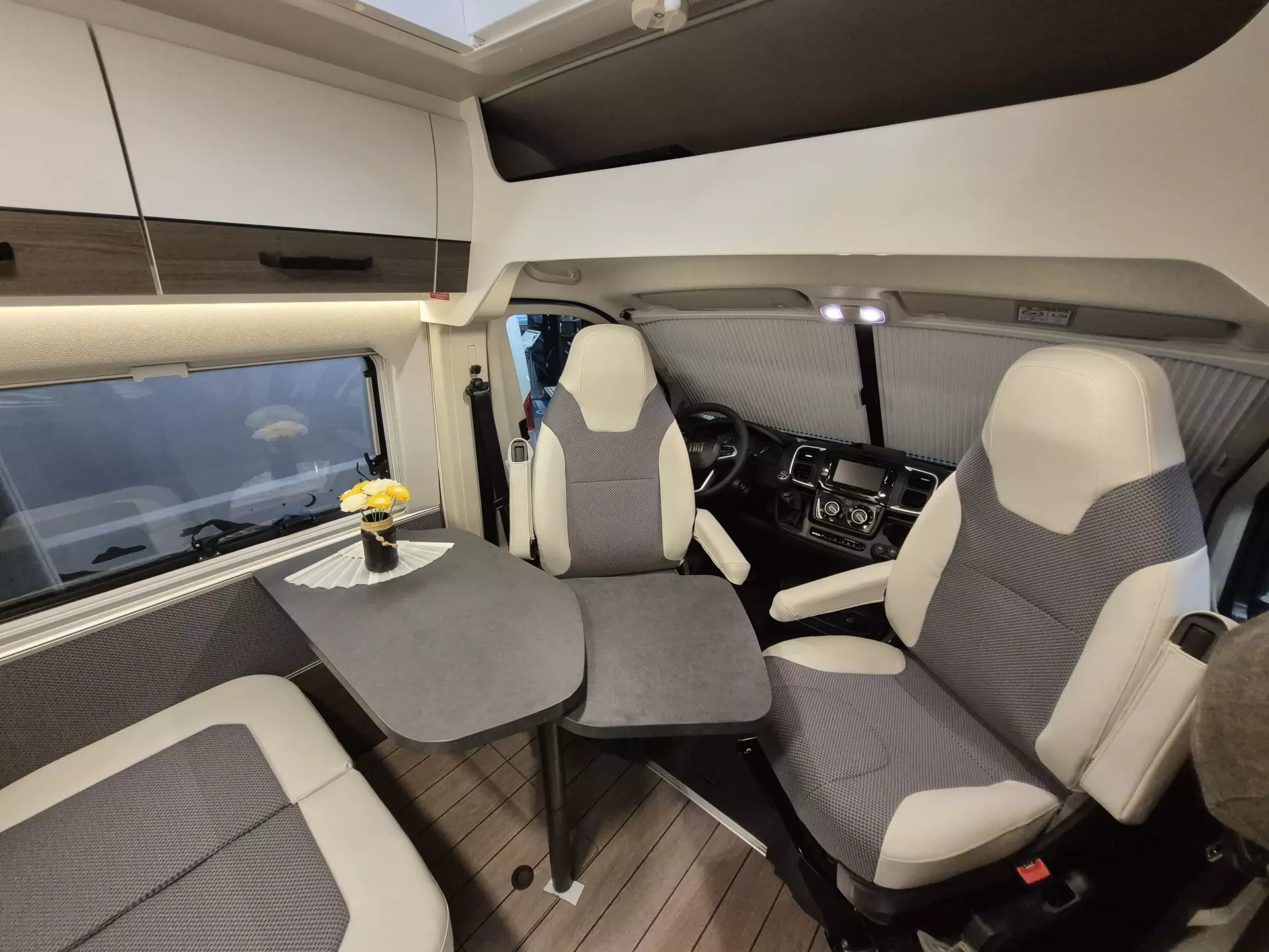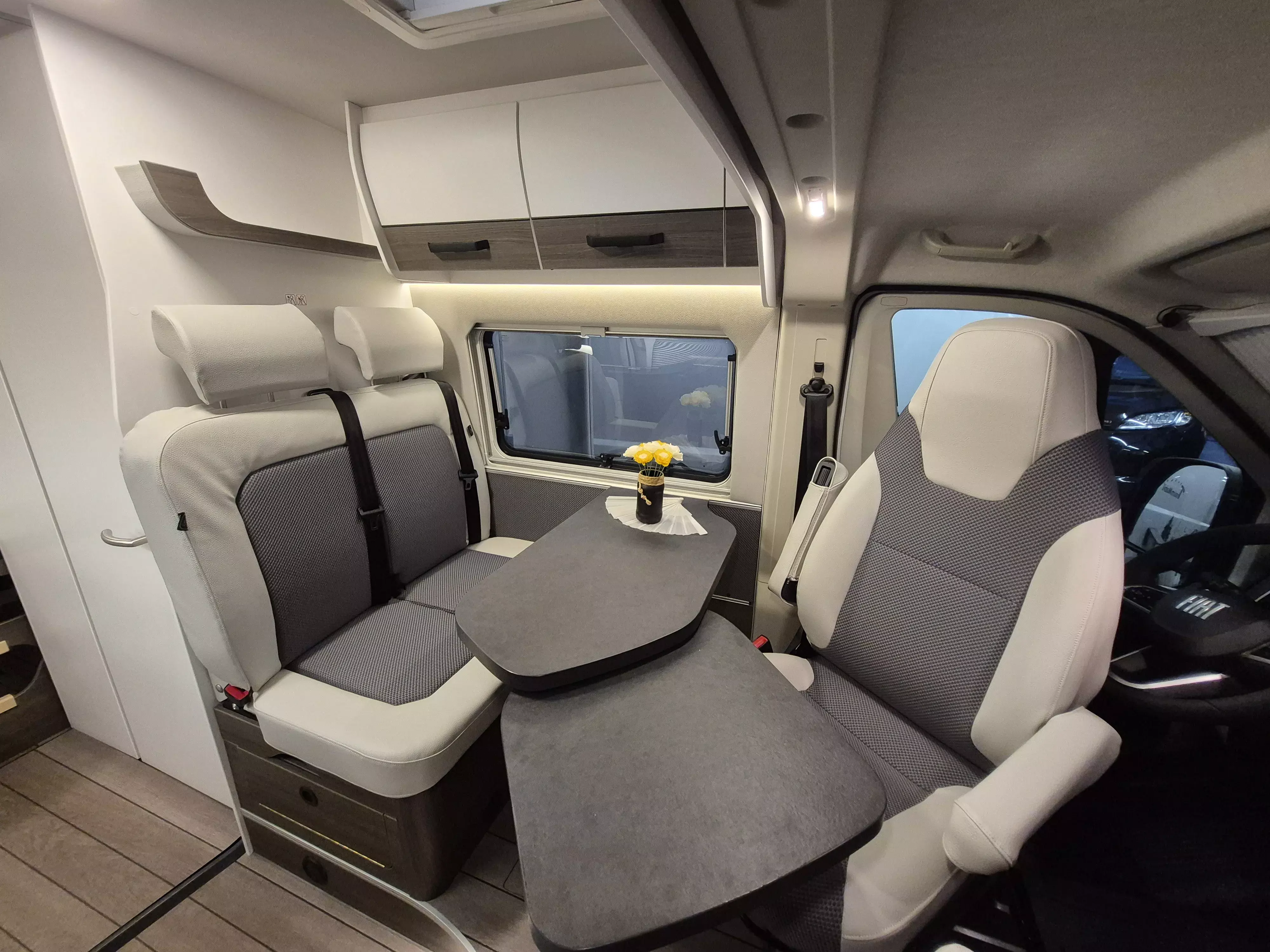Kraftstofftank 60 l, Ganzjahresreifen, Scheinwerferblenden schwarz, Grip Control inkl. Hill Descent Control (Traction+), Außenspiegel elektrisch verstell- & beheizbar, Vorbereitung AHK, original Fiat Pilotensitze (drehbar, mit verstellbaren Armlehnen), Vorverkabelung SAT & Rückfahrkamera, USB-Ladesteckdose Fahrerhaus, Klima anlage Fahrerhaus man., Kühlfach für 1,5-l-Flasche, Tempomat, Ladebooster Aufbaubatterie, Start & Stopp System inkl. smarter Lichtmaschine (220 A)