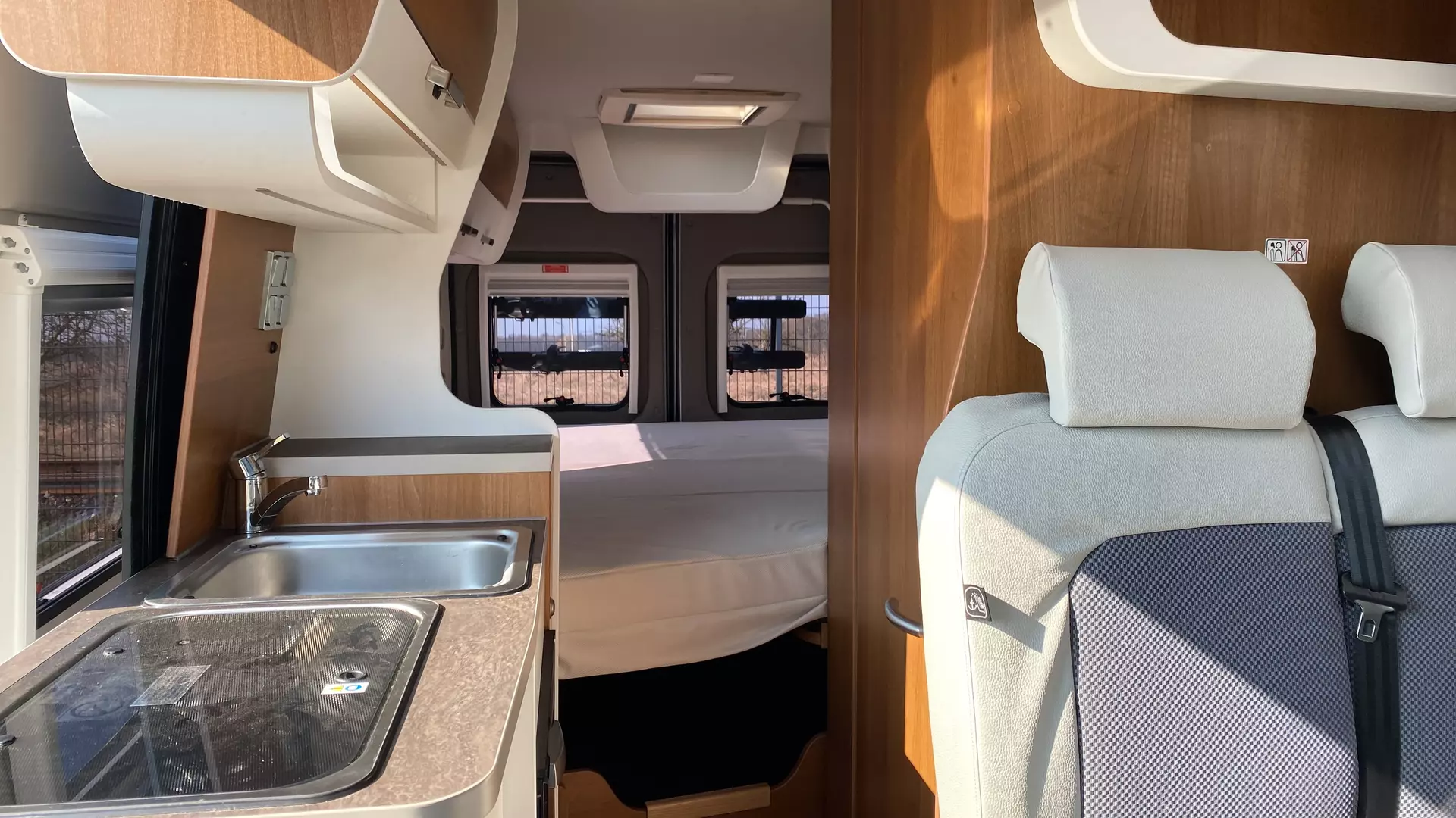 > Bugausbau mit Panoramafenster und klappbarer Jackenablage