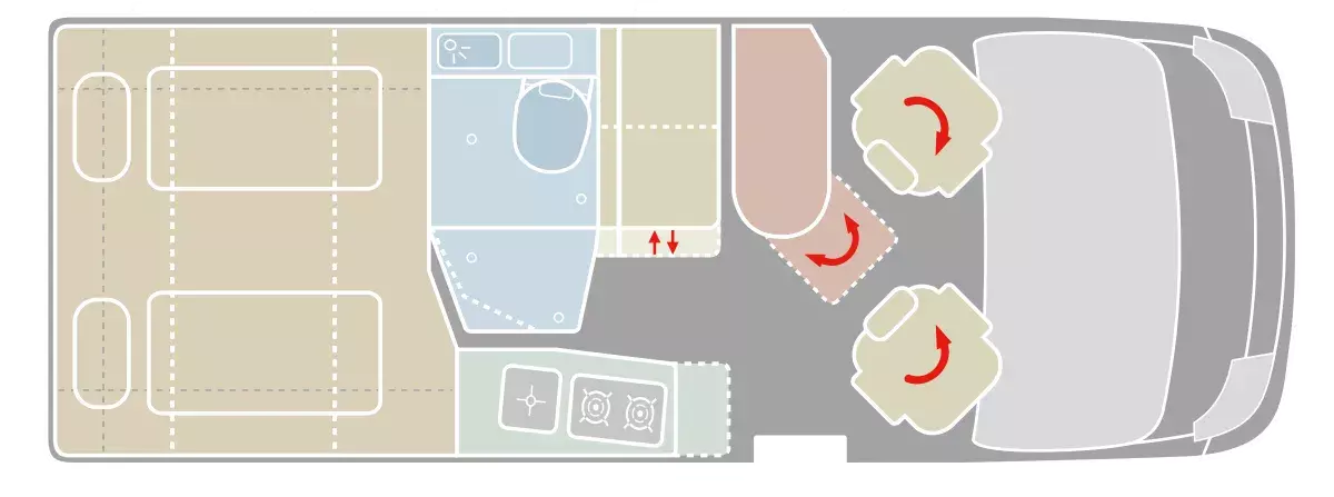 ⦁ Bugausbau ohne Panormafenster mit klappbarer Jackenablage