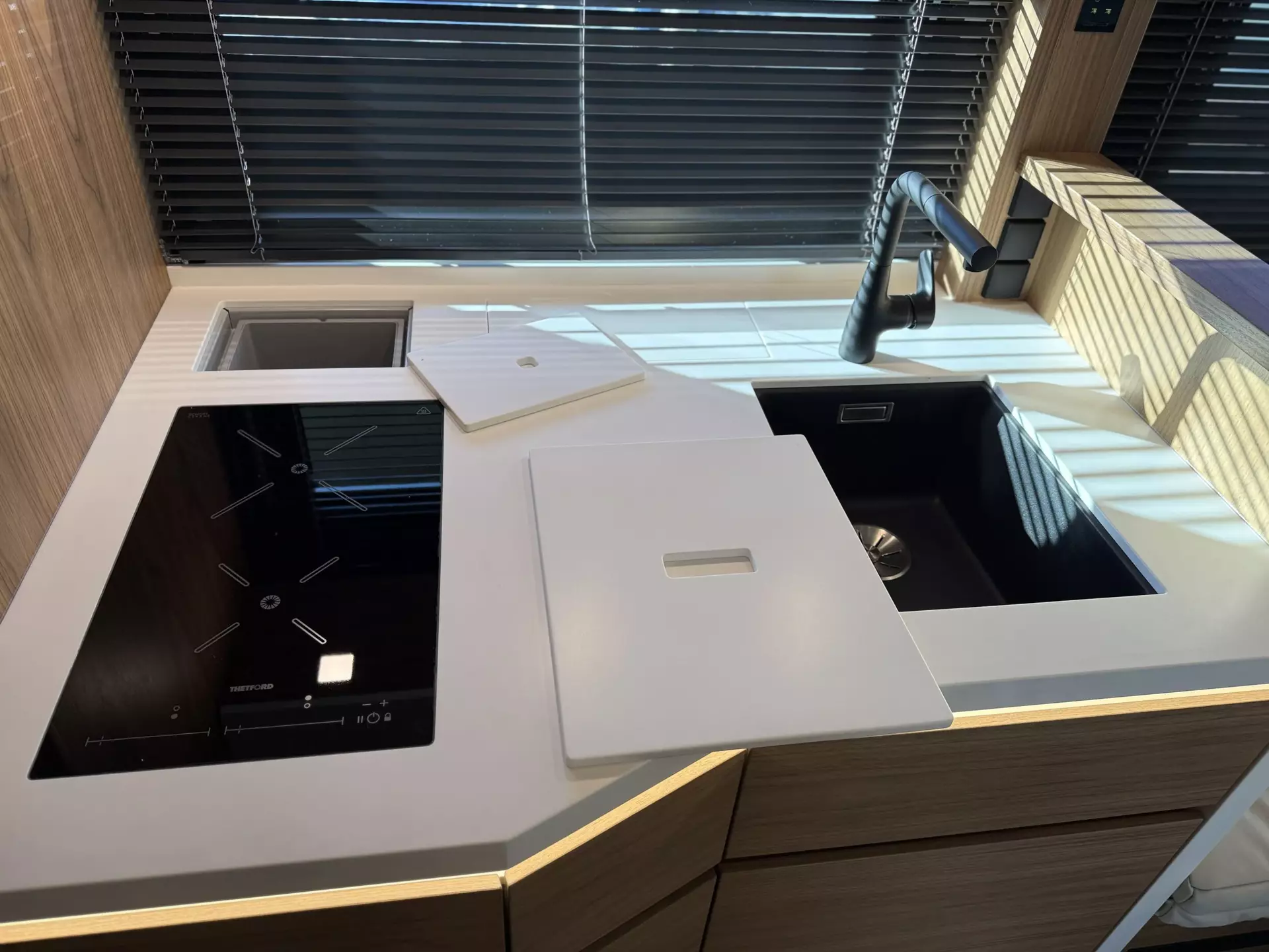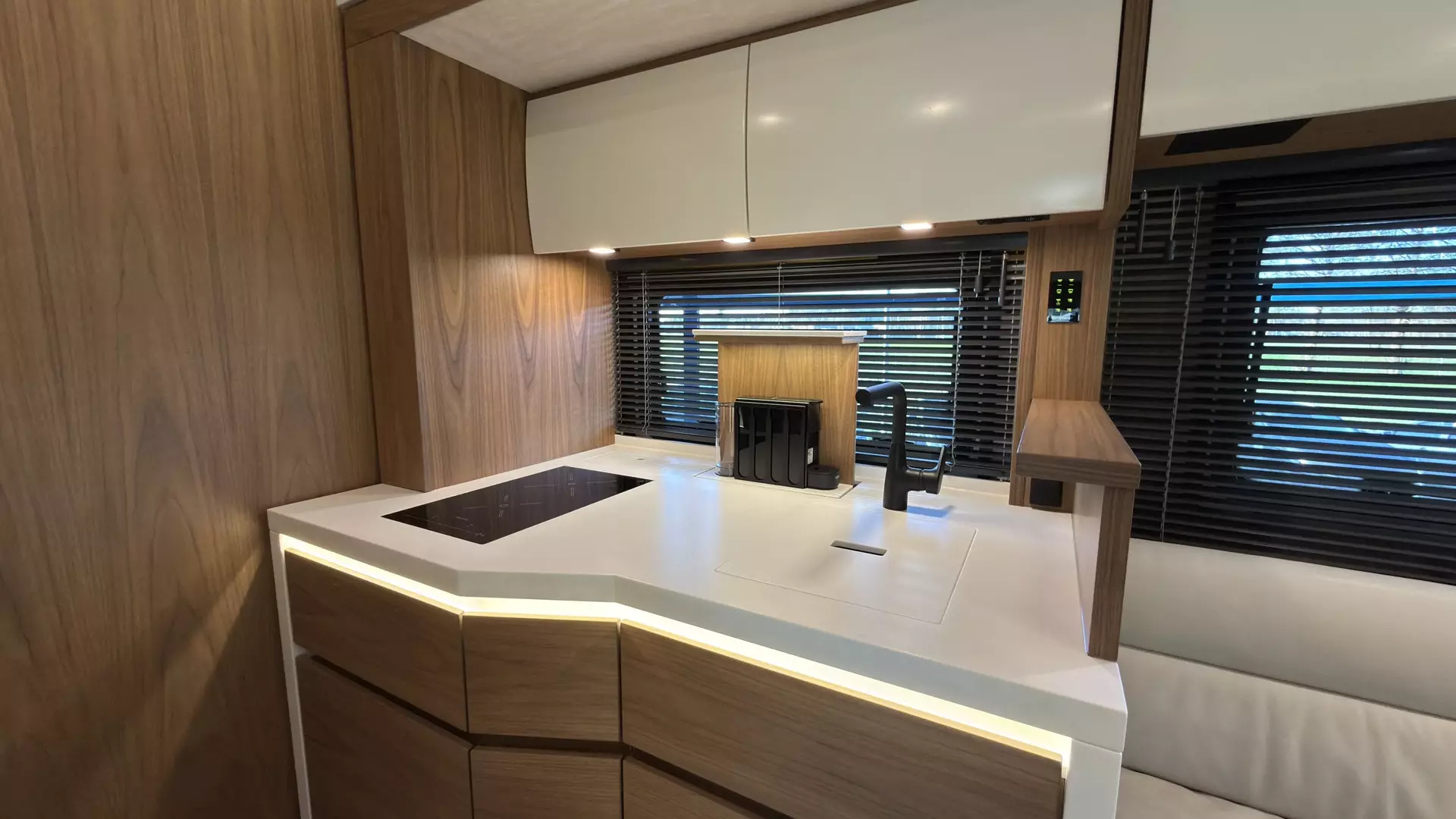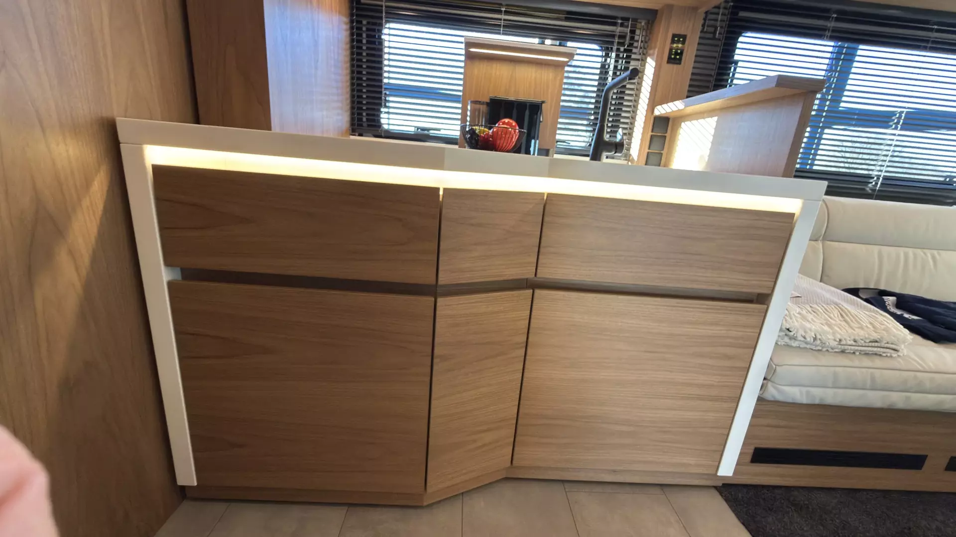 - Fußbodenheizung im Wohnraum mit thermostatischer Regelung unter dem Bartisch und im Fußraum von Fahrer- / Beifahrersitz