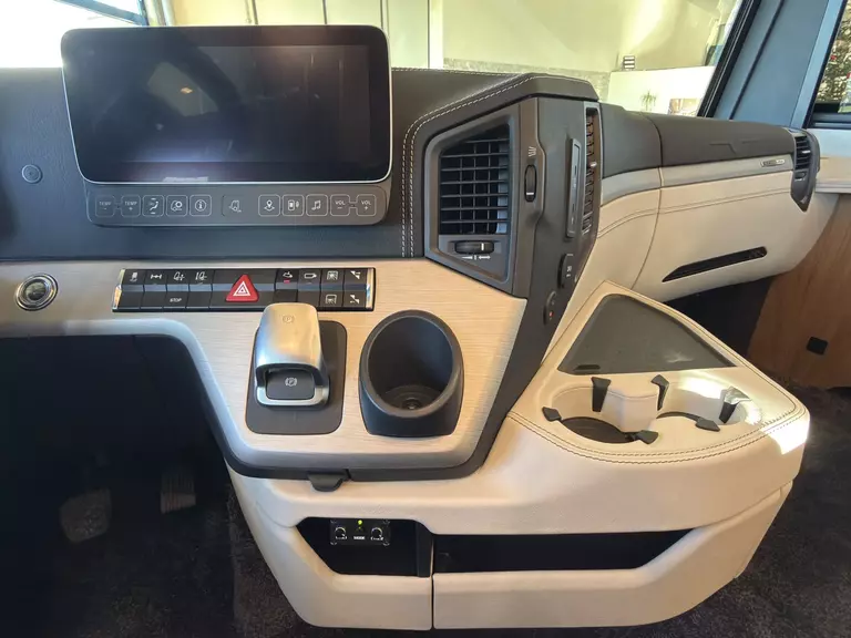 - Armaturenbrett und Mittelkonsole mit Leder im Bi-Color DesigBezogen (MB Actros) Seitenablagen Sonderform beledert mit Kontrastnaht