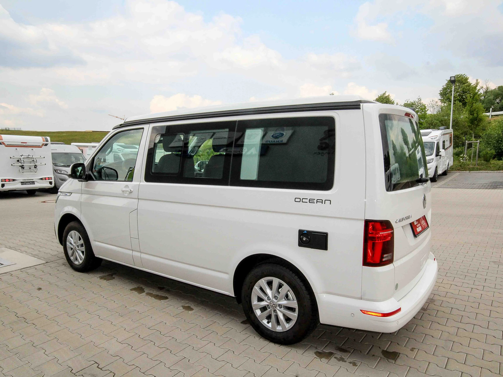 Kompakter alltagstauglicher Camper Van Volkswagen California T 6.1 Ocean mit Automatik, elektrischem Aufstelldach sowie der nachfolgenden hochwertigen Sonderausstattung: