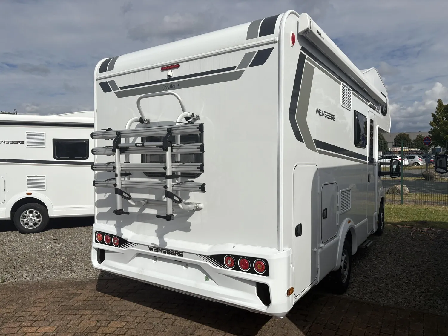 - VERMIETER-Paket Deluxe WEINSBERG A (All-in-One Navigationssystem, Reifendruckkontrollsystem, Rückfahrkamera inkl. Verkabelung, Head-up Display, ISOFIX-System (2 Kindersitze), Bezug Turin für Piloten-Komfortsitze, Zusätzliche Bezugsstoffgarnitur für Wohnraumpolster, Einstiegstufe elektrisch, Fahrradträger für 4 Räder Heck THULE ELITE G2, Alkovenbett klappbar, TRUMA DuoControl CS (inkl. Gasfilter), Kraftstofftank 90 Liter, Garagentür 62,5 x 110 cm, links, Zusätzliche Zurrschienen, in der Garage oben (2 Stück), Markise 405 x 250 cm weiß, Sturmleine für Markise im [MARKE] Design, Möbelverriegelungen in Metall, Rauchmelder, Gaswarner, Radzierblenden im WEINSBERG Design, Aufkleber-Set Miet-Fahrzeug)