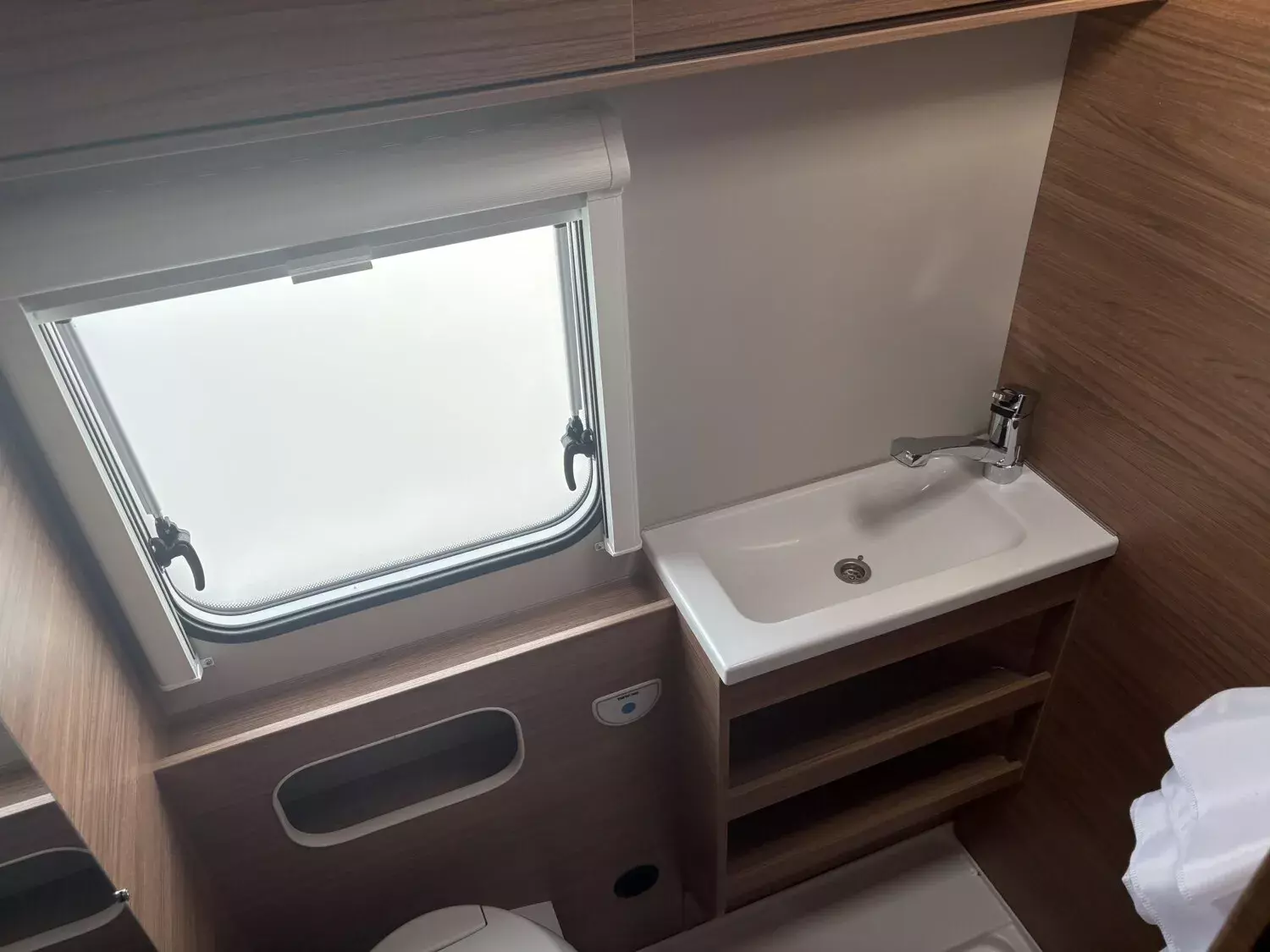 - Ausstellfenster 52 x 50 cm, mit Insektenschutz und Verdunklung (Toilettenraum)