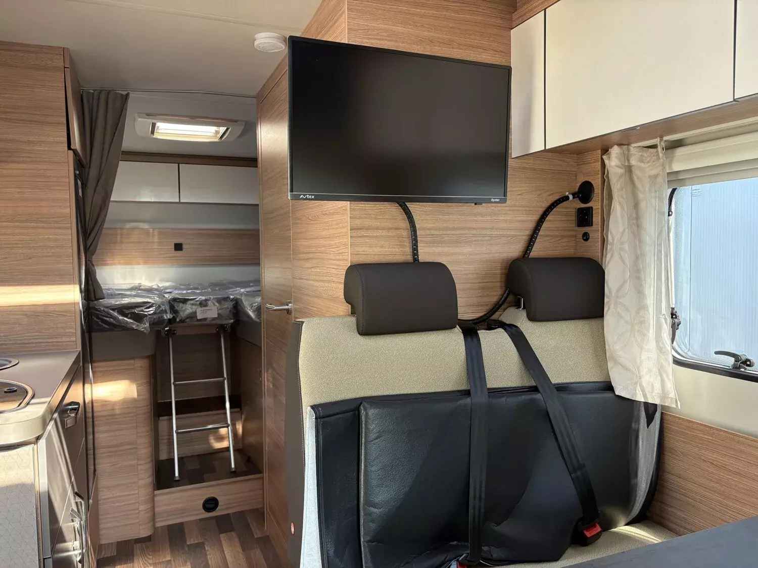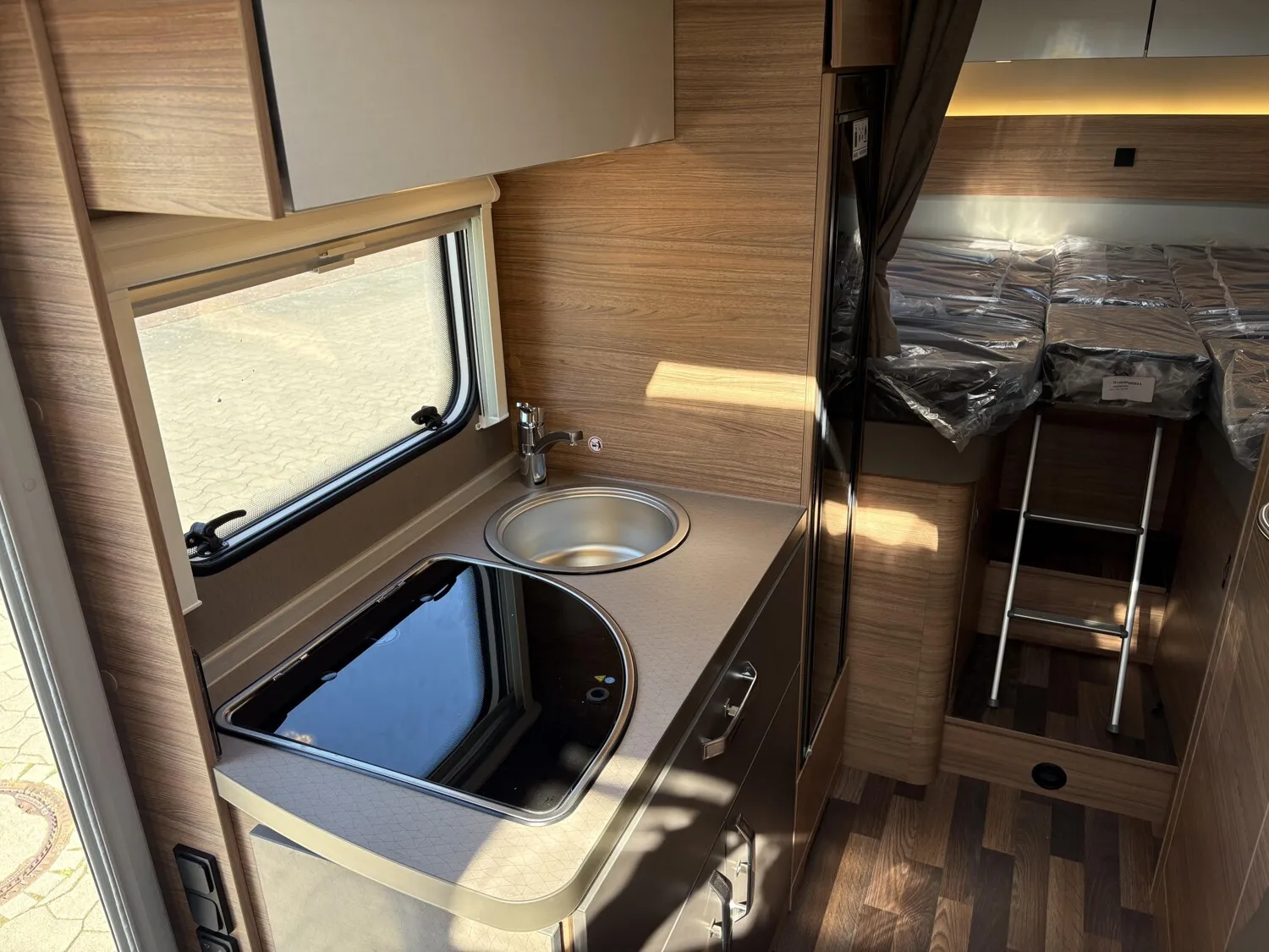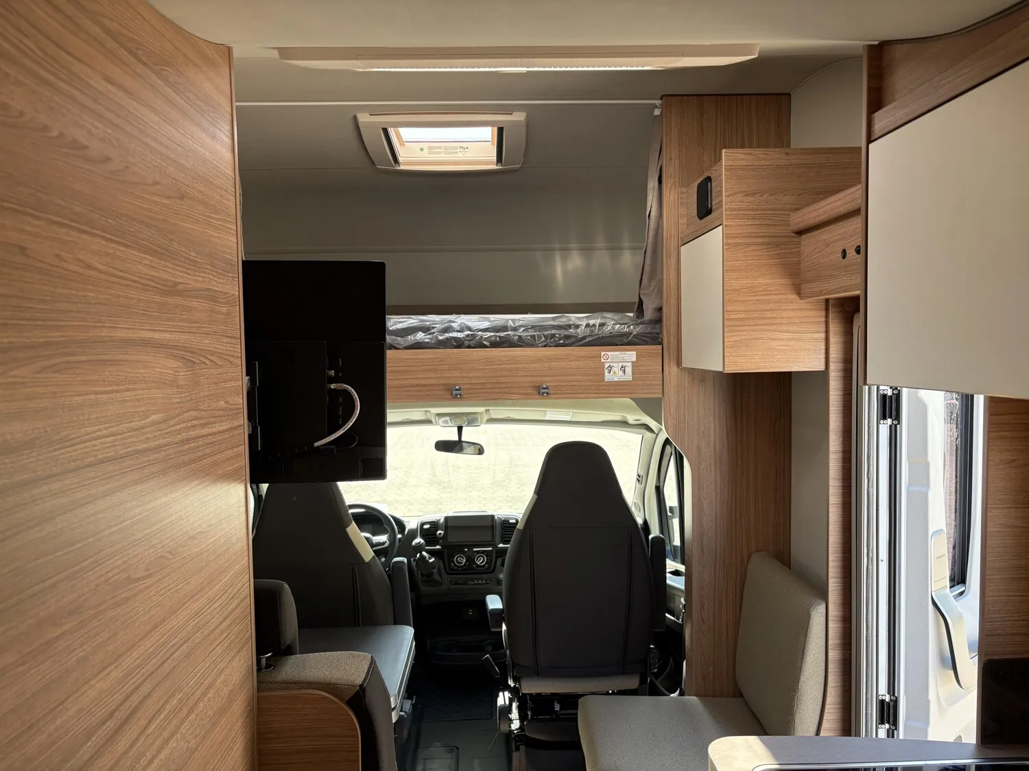 - TRUMA DuoControl CS (inkl. Gasfilter) Zusätzliche Zurrschienen, in der Garage (2 Stück) Möbelverriegelungen in Metall Kraftstofftank 90 Liter Garagentür 62,5 x 110 cm, links ISOFIX-System (2 Kindersitze) Markise 405 x 250 cm, weiß Bezug ?Turin? für Piloten-Komfortsitze Sturmleine für Markise im {MARKE] Design All-in-One Navigationssystem Rauchmelder Reifendruckkontrollsystem Rückfahrkamera, inkl. Verkabelung Head-up Display Gaswarner Einstiegstufe elektrisch Alkovenbett klappbar
