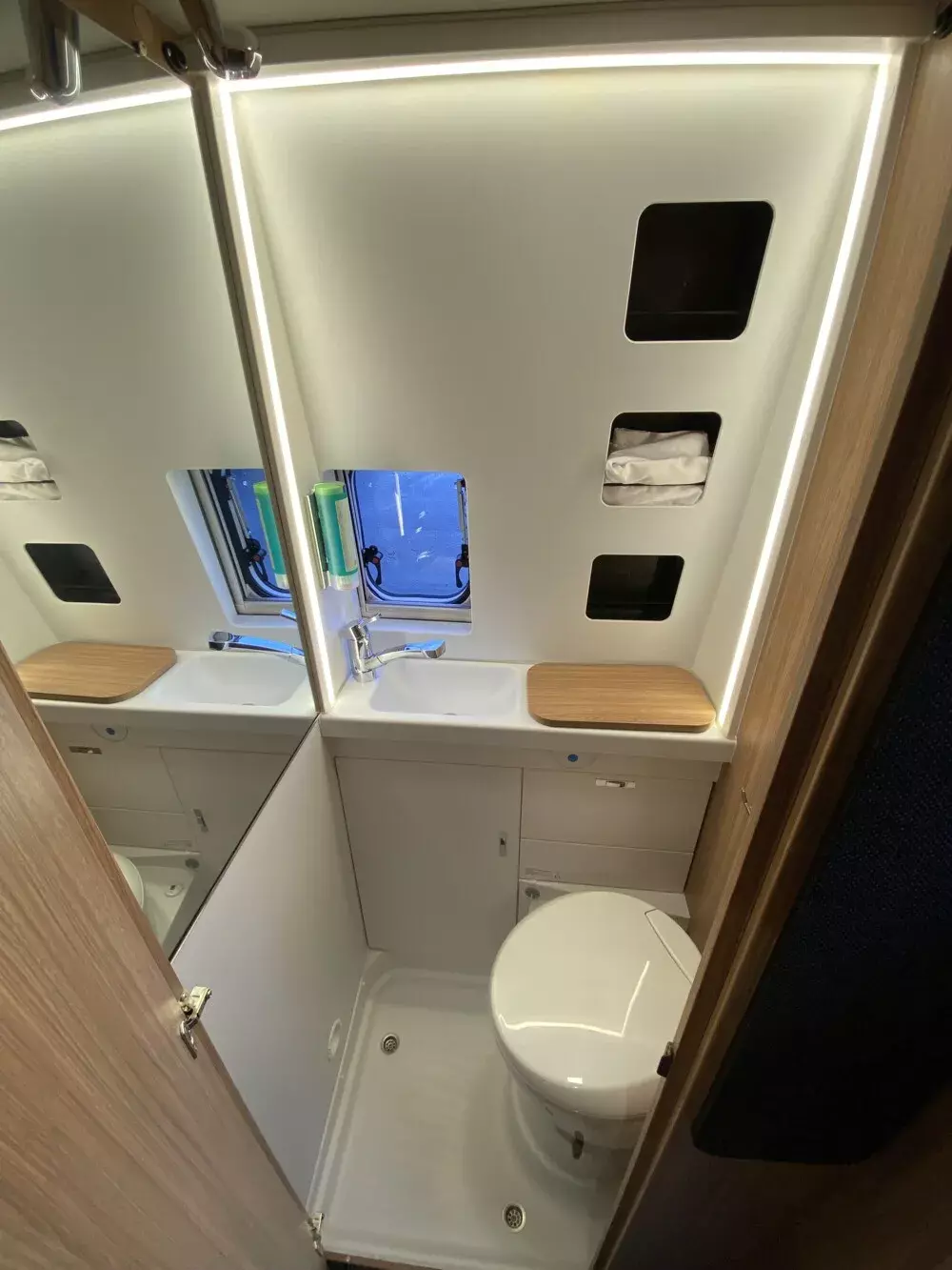 - Ambientebeleuchtung im Wohnraum/Nasszelle (dimmbar)