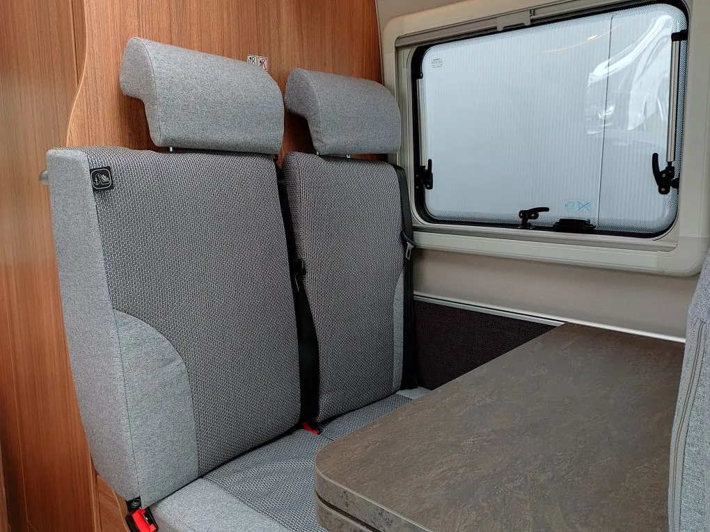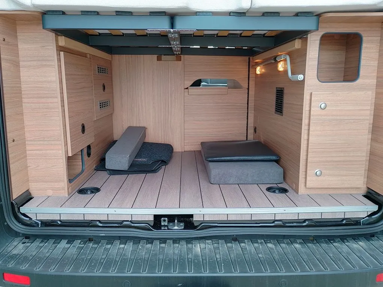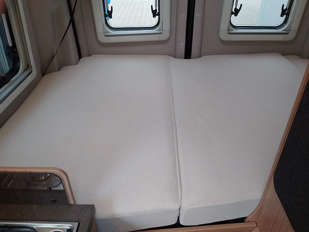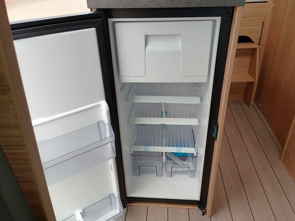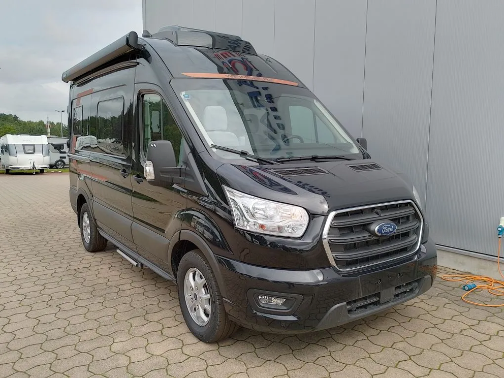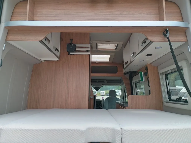 - (Ambientebeleuchtung im Wohnraum/Nasszelle, Regenrinne über der Schiebetür mit LED (dimmbar), USB-Steckdosen, im Küchenbereich, 230 V SCHUKO-Steckdose zusätzlich, im Heck)