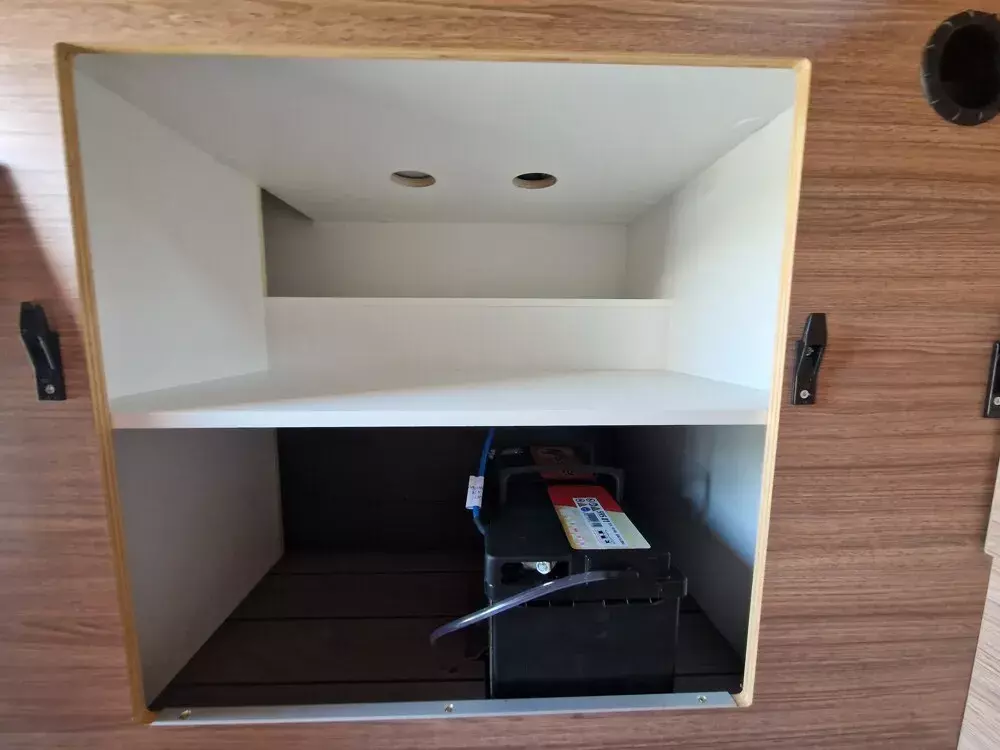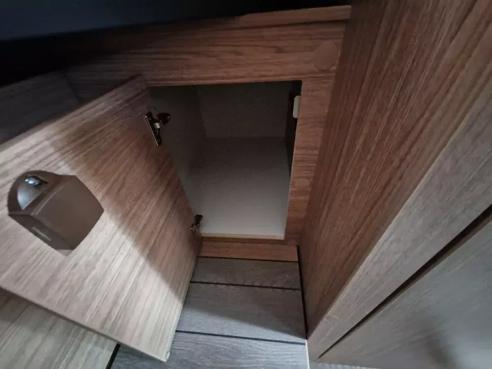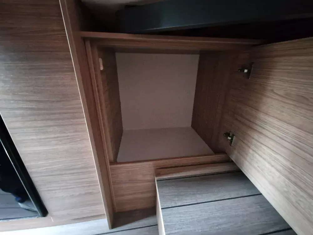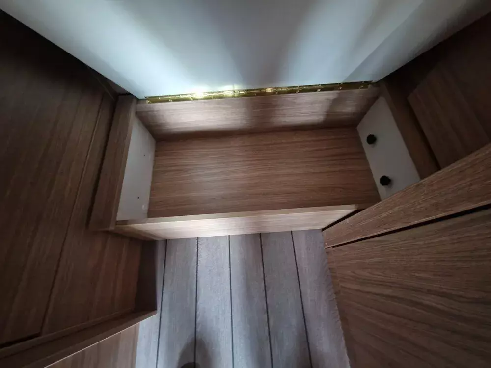 - Function-Paket (Klappbare Kleiderstange in Nasszelle an Dach und Kleiderhaken (2 Stück), Küchenarbeitsplatte mit abklappbarer Verlängerung und 2 Taschenhalter, Tisch ausdrehbar, einzeln (ohne Gästebett))