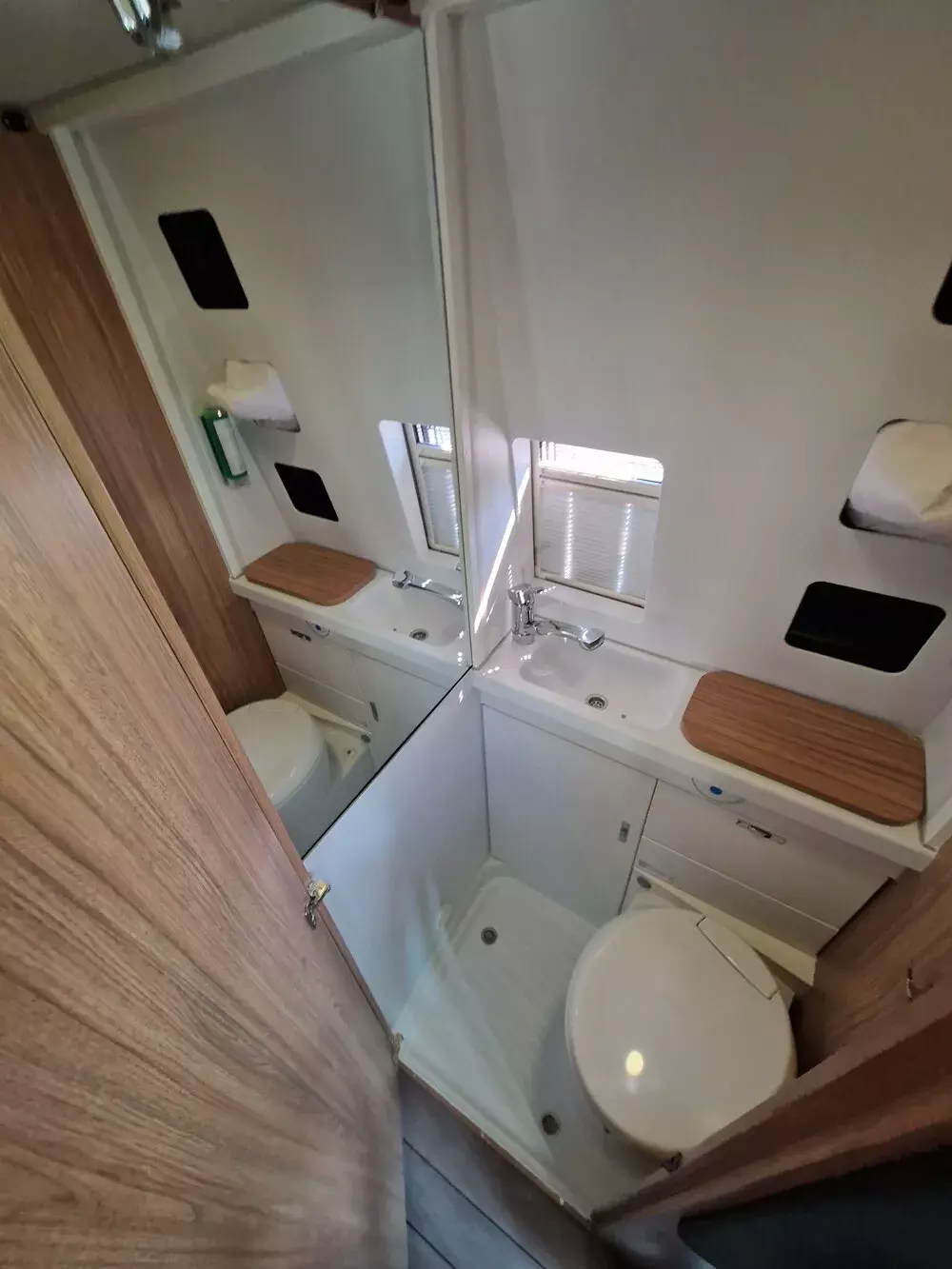 - Ausstellfenster, mit Insektenschutz und Verdunklung (Toilettenraum)