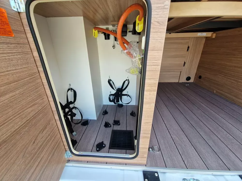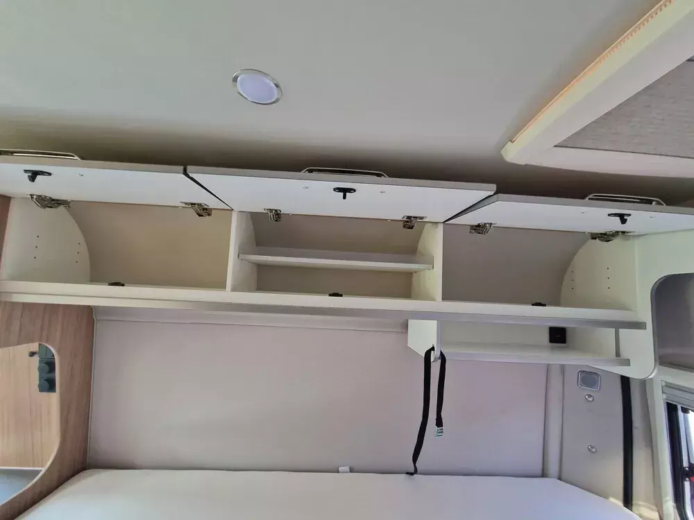- Voltage-Paket (Regenrinne über der Schiebetür mit LED (dimmbar), Ambientebeleuchtung im Wohnraum/Nasszelle (dimmbar), Leseleuchten im Fahrerhaus, USB-Steckdose (1 Stück), im Küchenbereich, 230 V SCHUKO-Steckdose zusätzlich, im Heck (1 Stück), USB-Steckdose (1 Stück), im Heck, 230 V SCHUKO-Steckdose zusätzlich, in der Sitzgruppe (1 Stück))