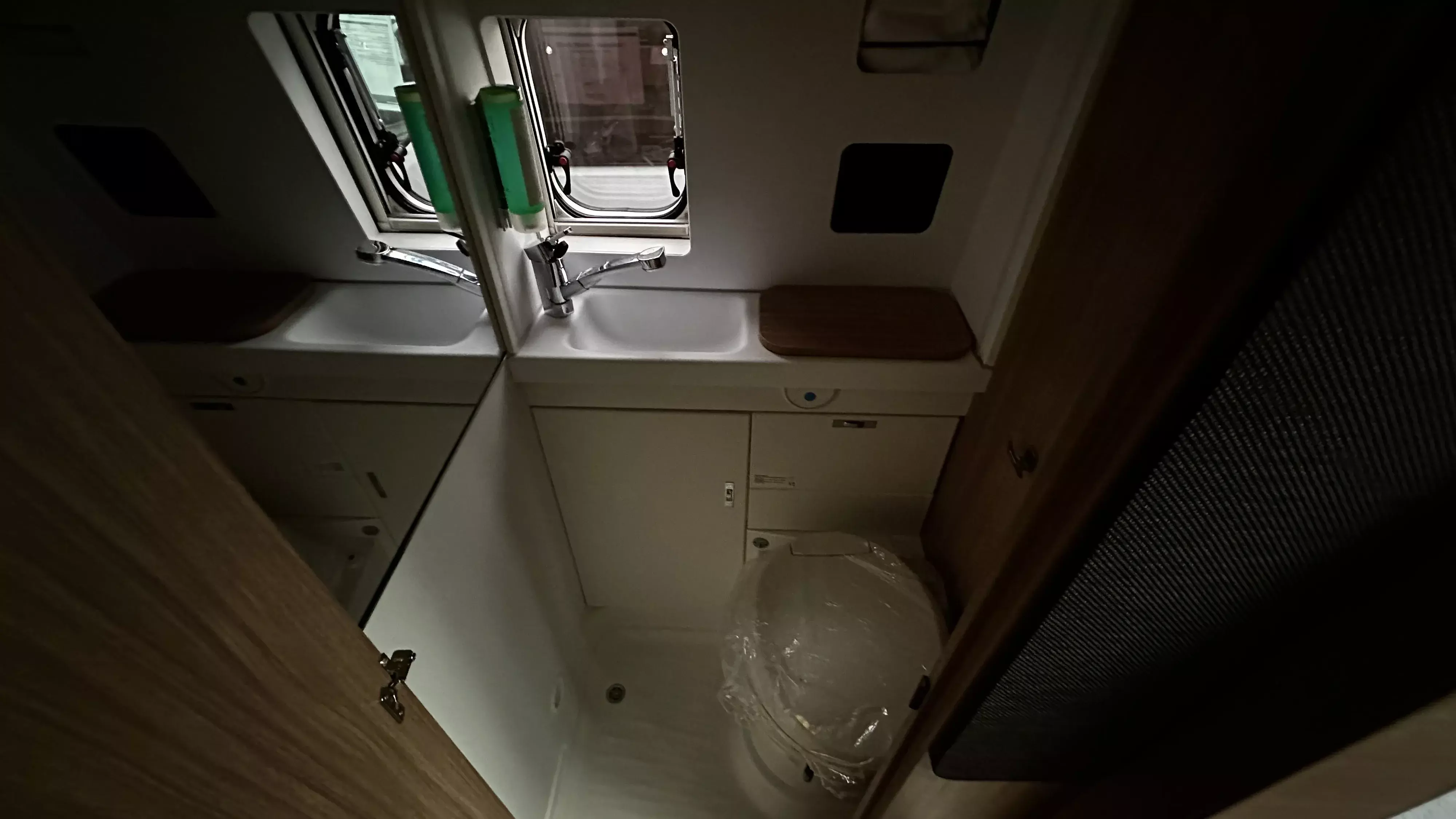 - Regenrinne über der Schiebetür mit LED (dimmbar)