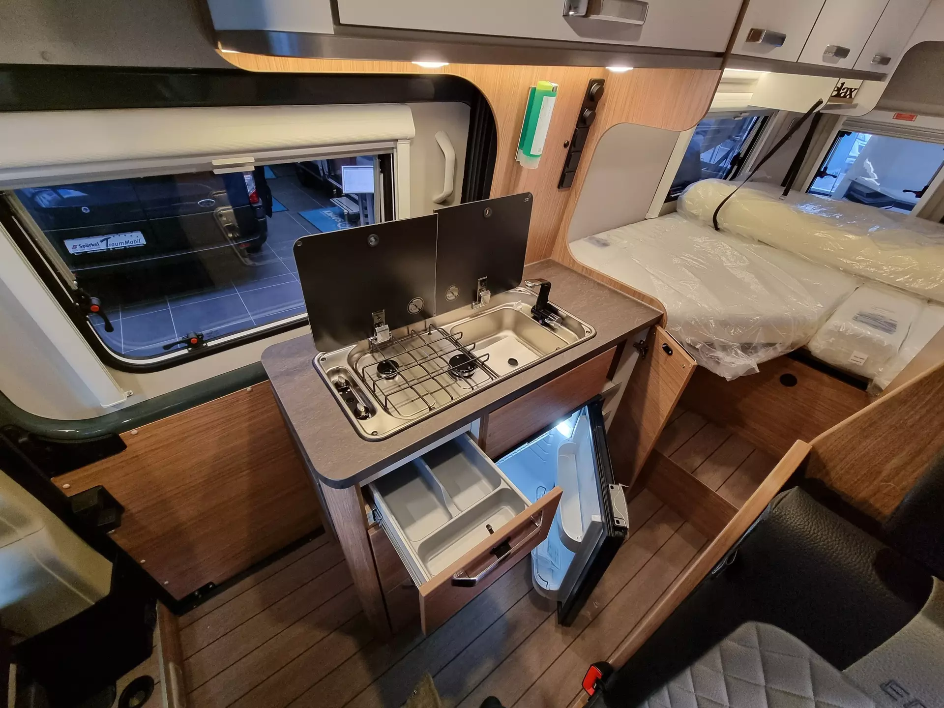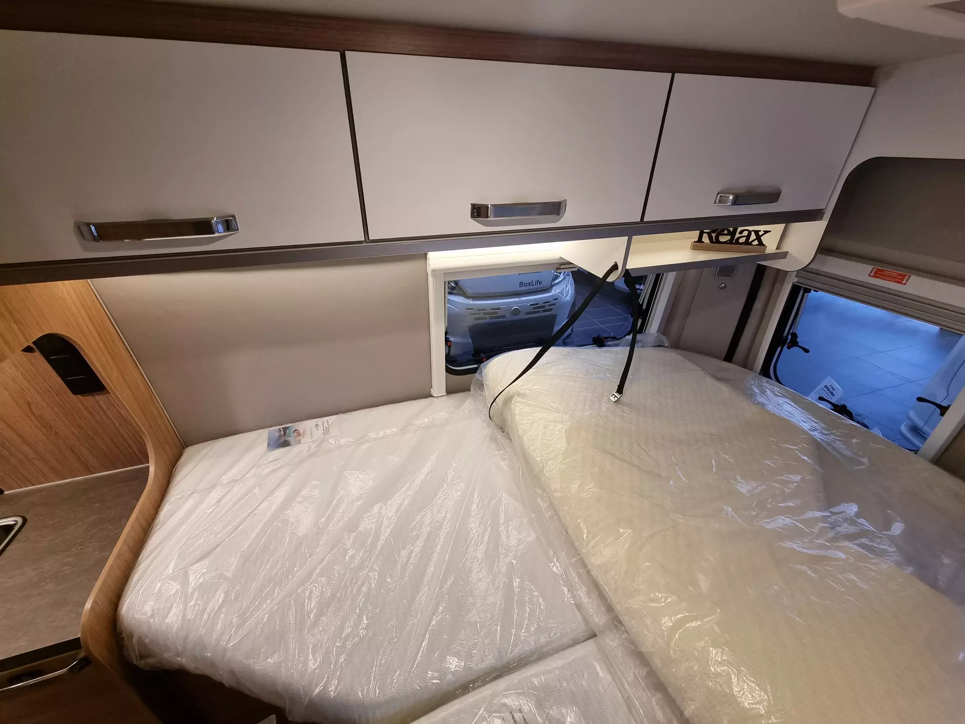 - Ausstellfenster Heck, mit Insektenschutz und Verdunklung (rechts)