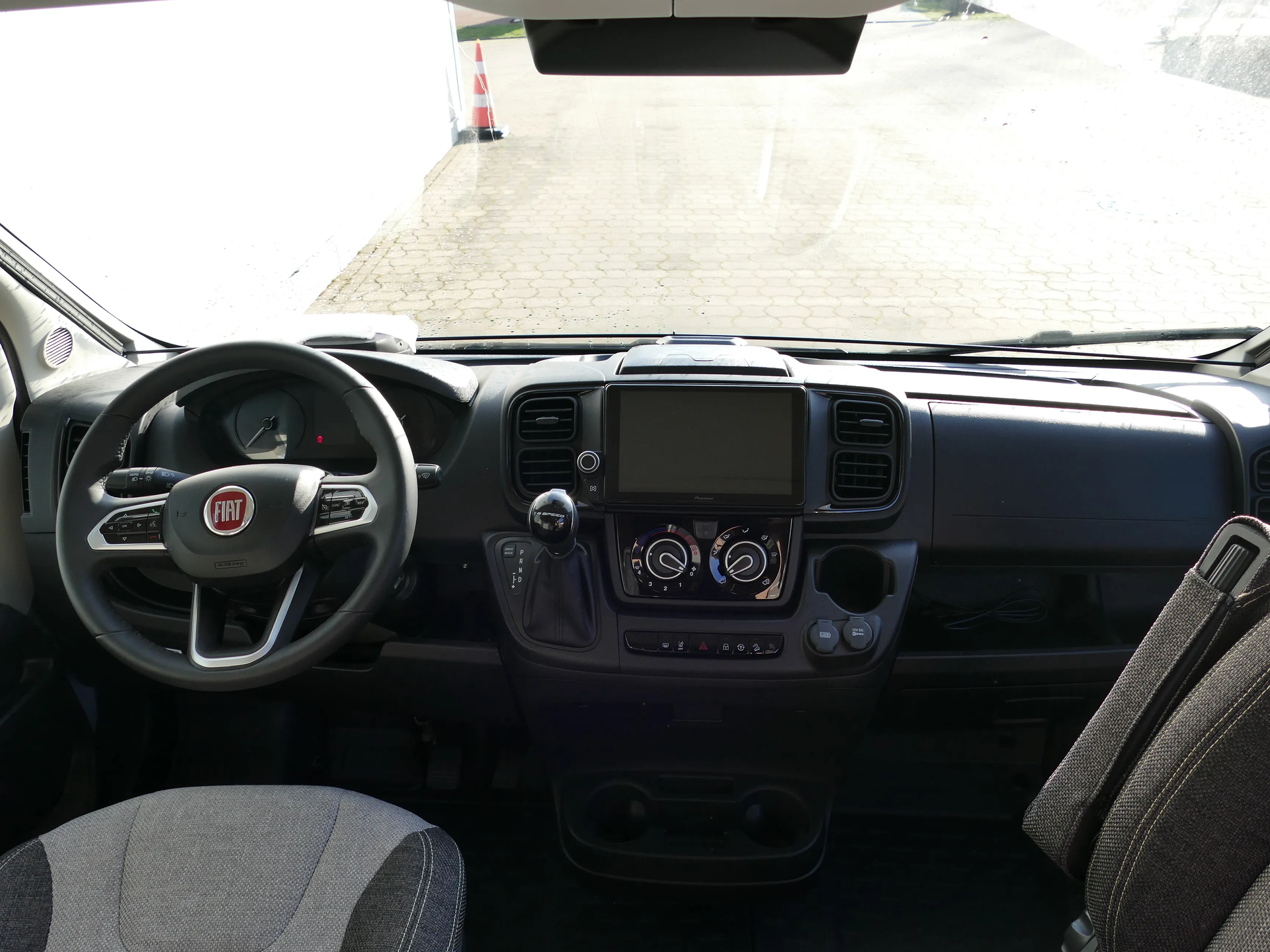 - Fiat-Paket (Sitzkasten-Verkleidungen Fahrerhaussitze, Fahrerhaussitze drehbar, FIAT Captainchair-Sitze mit Armlehnen, Höhenverstellung Beifahrersitz, Lenkrad mit Bedienelementen für Radio, Außenspiegel elektrisch einstell- und beheizbar)