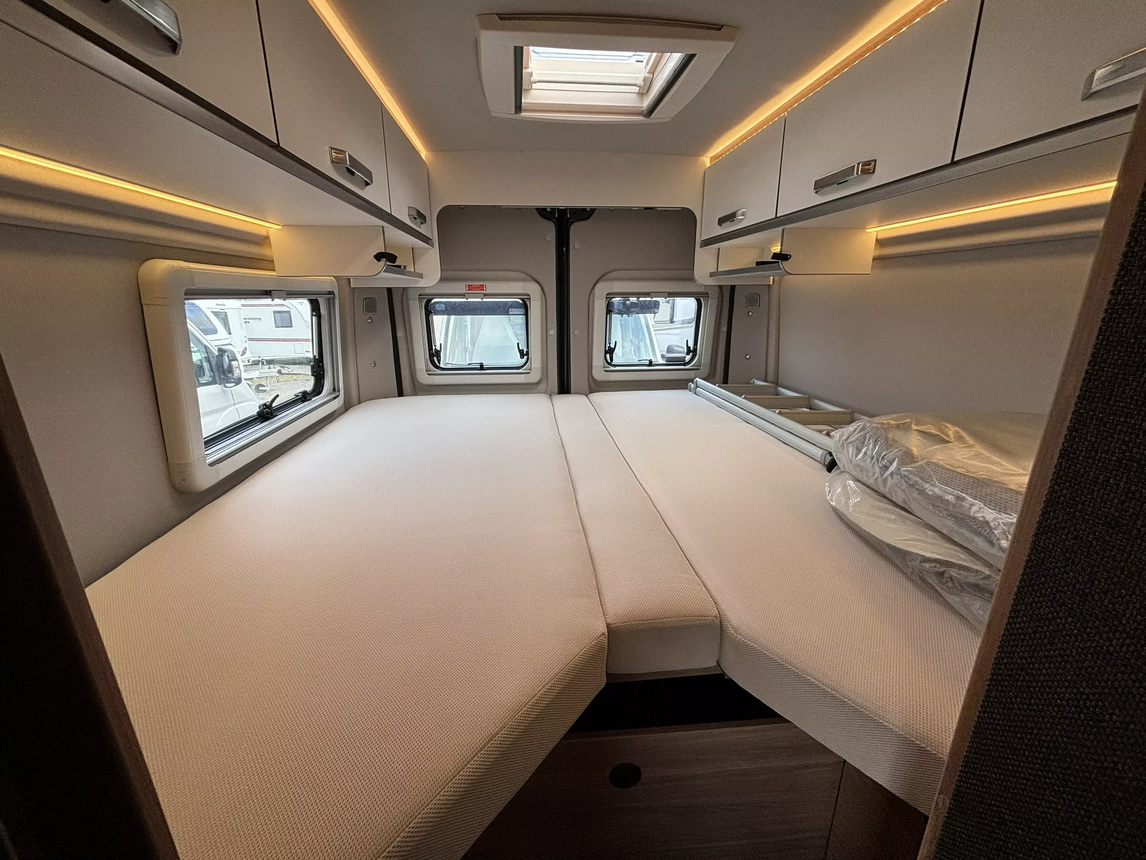 | Betten | Einzelbett, Doppelbett längs, Aufstelldach (Doppelbett) |