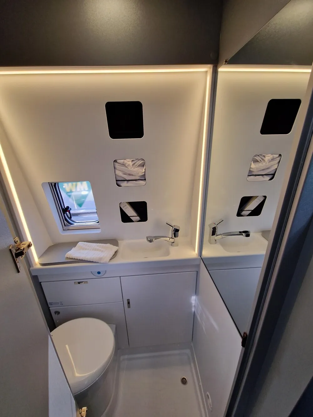 - Ausstellfenster, mit Insektenschutz und Verdunklung (Toilettenraum)