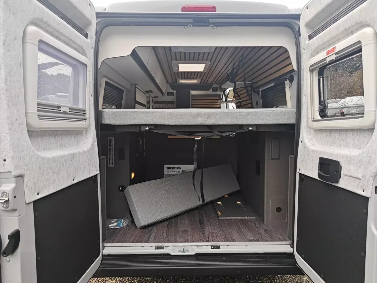 - Ausstellfenster Heck, mit Insektenschutz und Verdunklung (rechts)