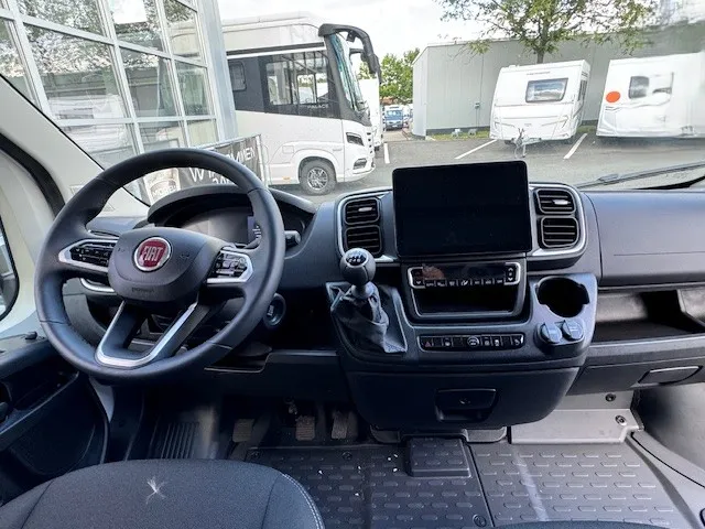 - MEDIA 10" FIAT – Camper Vans: Klimaanlage Fahrerhaus, automatisch (Aufpreisdifferenz zur Klimaanlage manuell) / Virtuelles Cockpit / FIAT 10“-Infotainmentsystem mit Touchscreen, DAB, Bluetooth Schnittstelle, Lenkrad-Bedienelementen, Apple CarPlay / Android Auto und Navigationssystem / Uconnect Box (inkl. Connected Services RTK) / Doppel-USB-Schnittstelle am Armaturenbrett / Rückfahrkamera FIAT