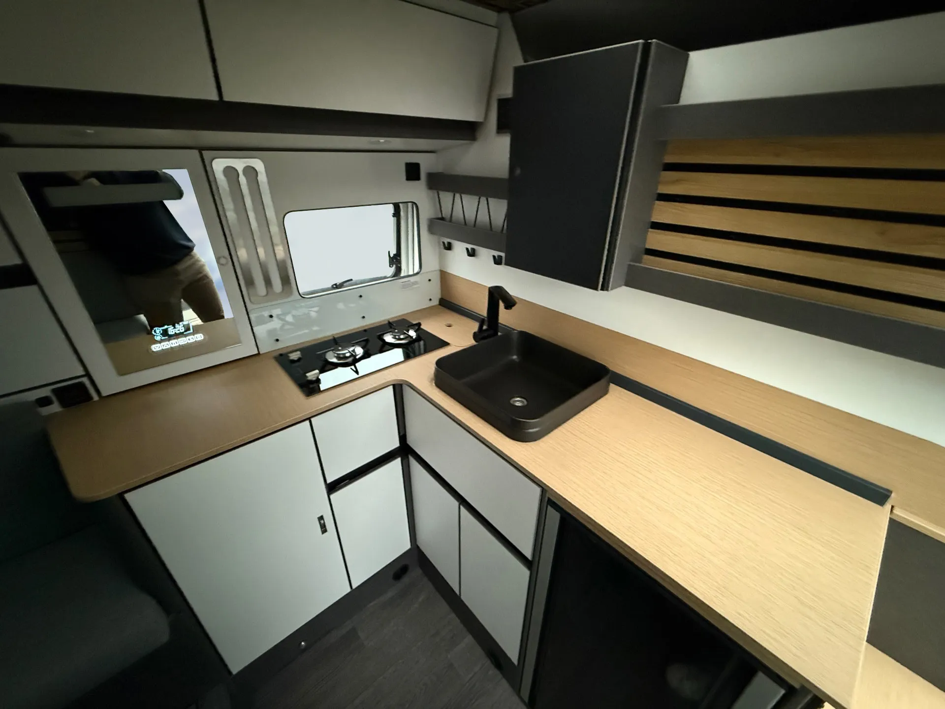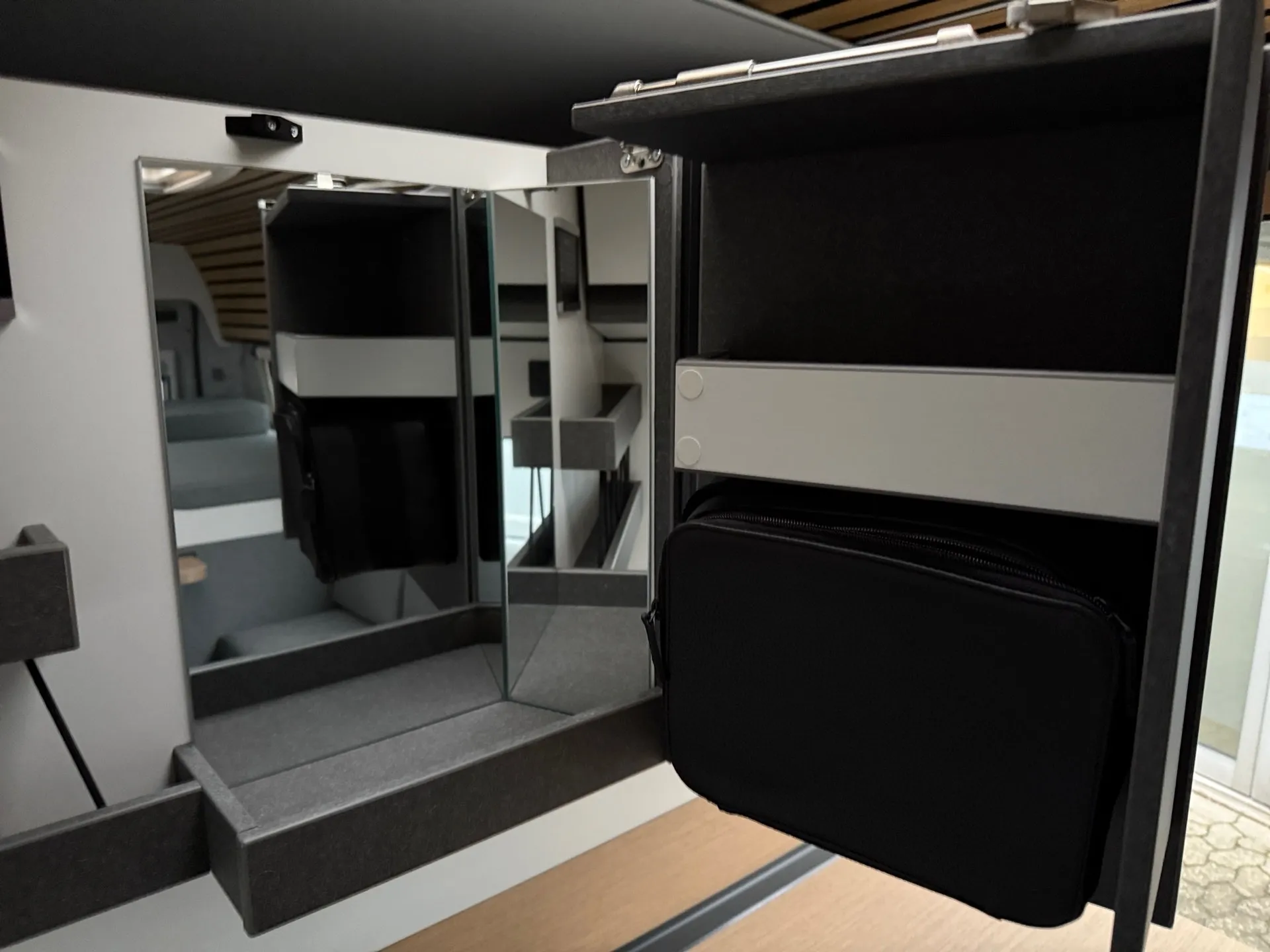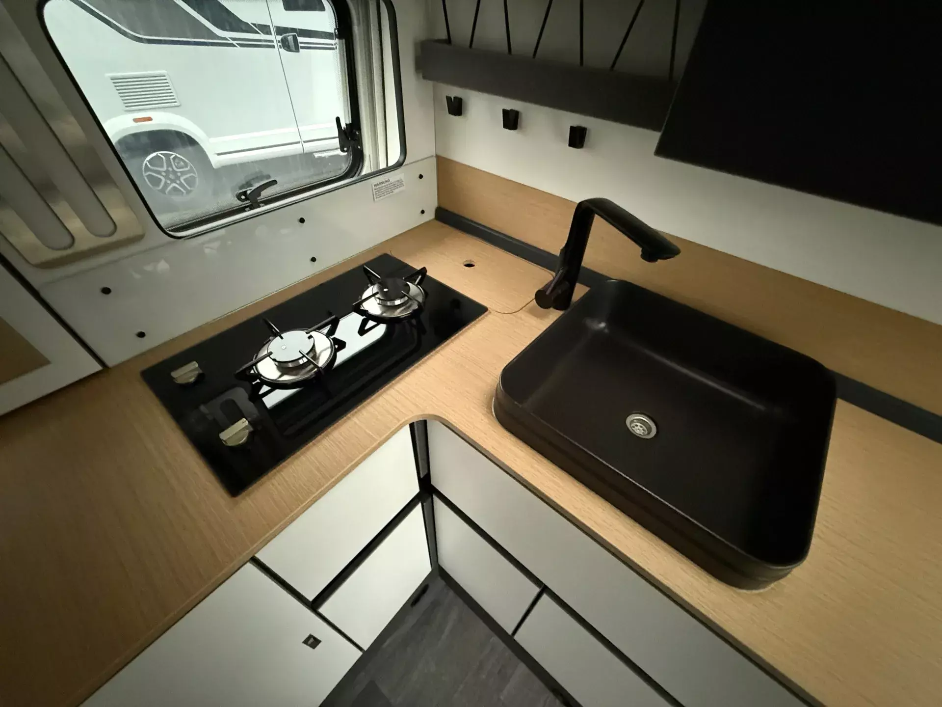 - Ausstellfenster Heck, mit Insektenschutz und Verdunklung (rechts)