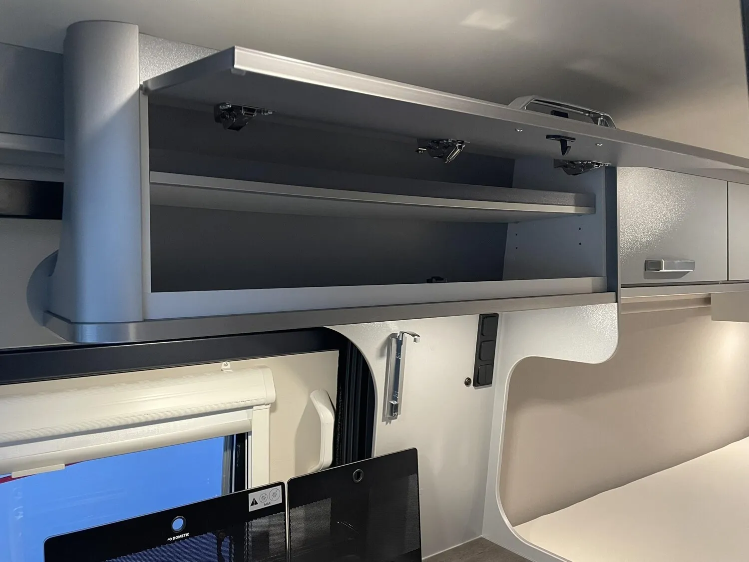 - Function-Paket (Klappbare Kleiderstange in Nasszelle an Dach und Kleiderhaken (2 Stück), Küchenarbeitsplatte mit abklappbarer Verlängerung und 2 Taschenhalter, Tisch ausdrehbar, einzeln (ohne Gästebett))