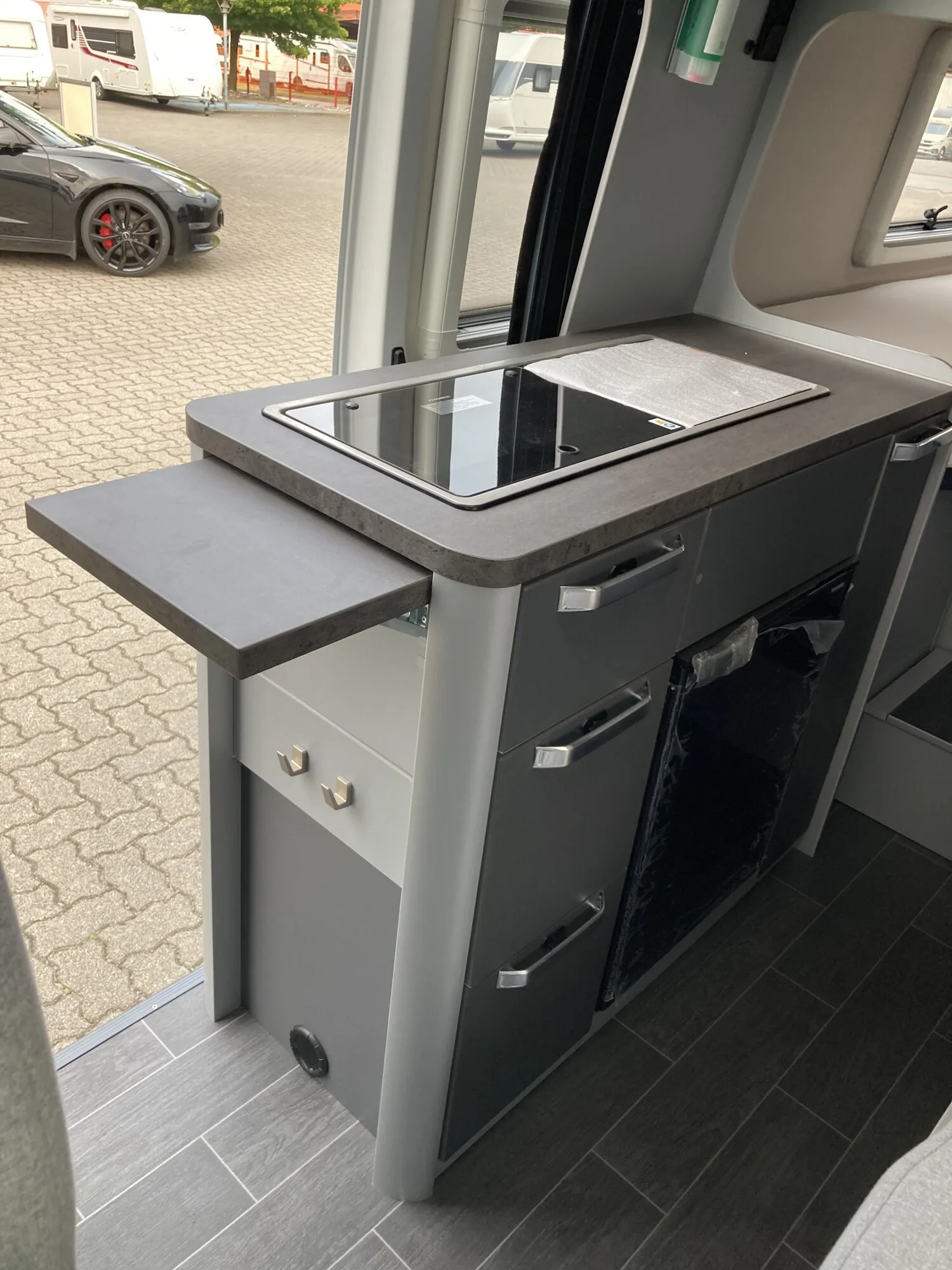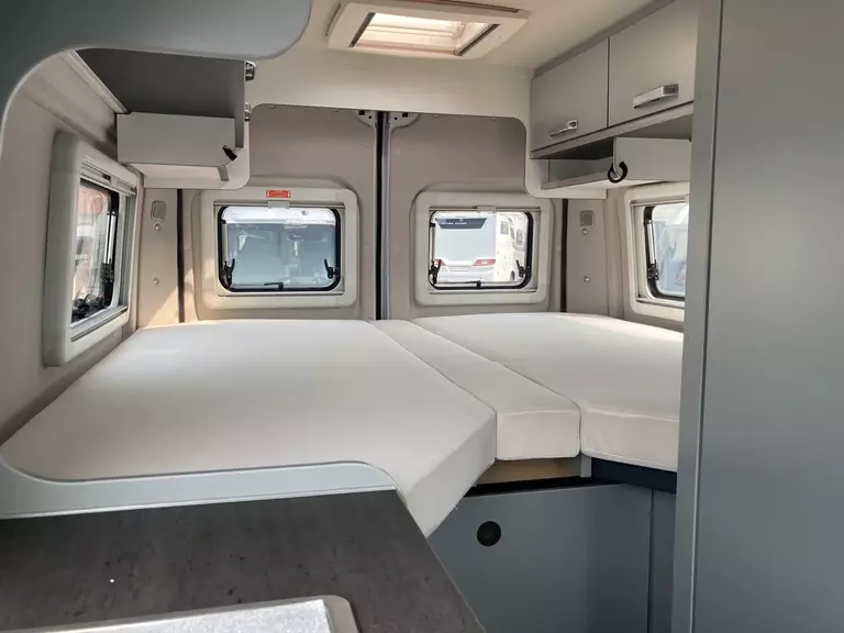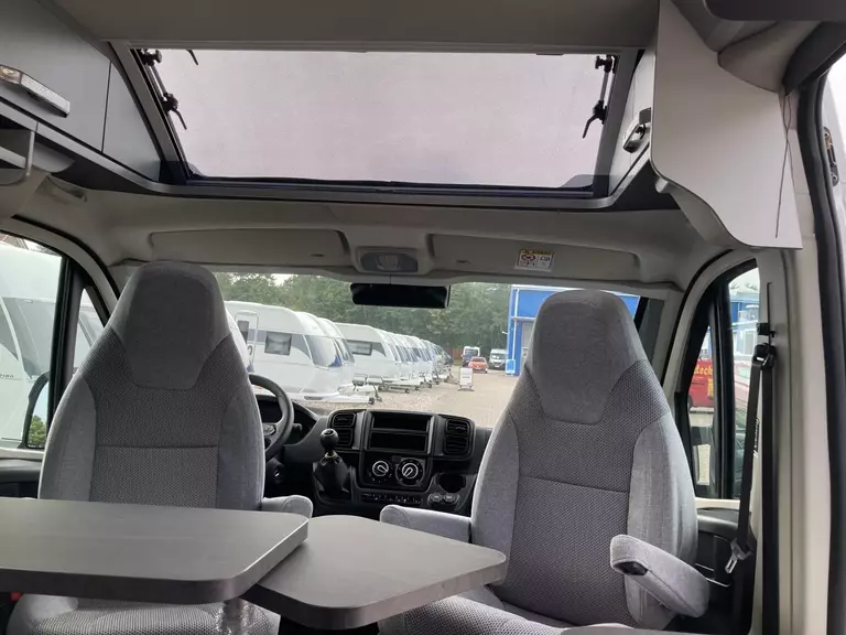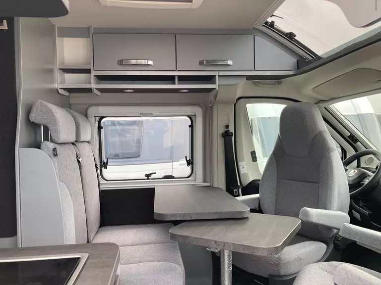 6-Gang-Schaltgetriebe, Chassis Uni-Lackierung: Weiß, Hochwertige Passform-Sitzbezüge, Tempomat – Cruise Control, Hill Holder (Berganfahrhilfe), ABSElektronische Wegfahrsperre, Trailer Stability Control System, Post Collision Braking System, Seitenwindassistent, Verzurrösen im Boden, Großer variabler Stauraum im Heck, Kältebrückenoptimierte Isolation, Dinettensitzbank mit integrierter Heizung, Kocher-Spülen-Kombination inkl. 2-Flammen-Kocher, Kompressor-Kühlschrank 75 Liter, Ergonomischer Toilettenraum mit integrierter Dusche, Kassetten-Toilette THETFORD drehbar, Heizung TRUMA Combi 4, Ladebooster für Aufbaubatterie
