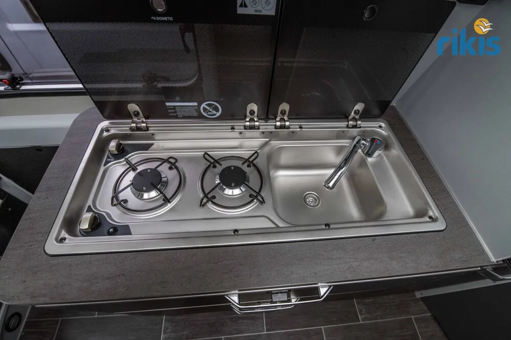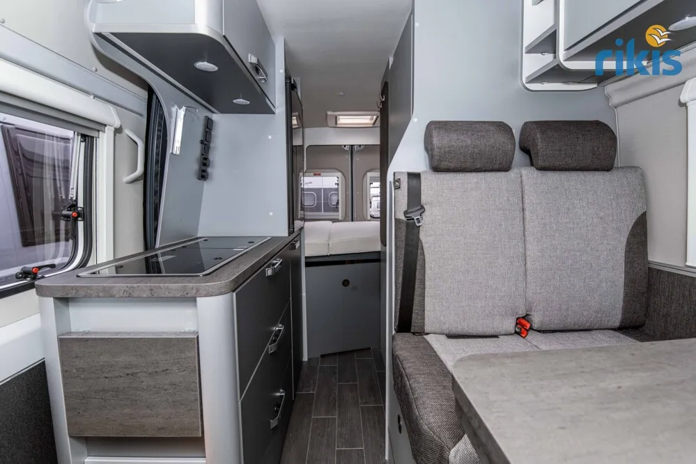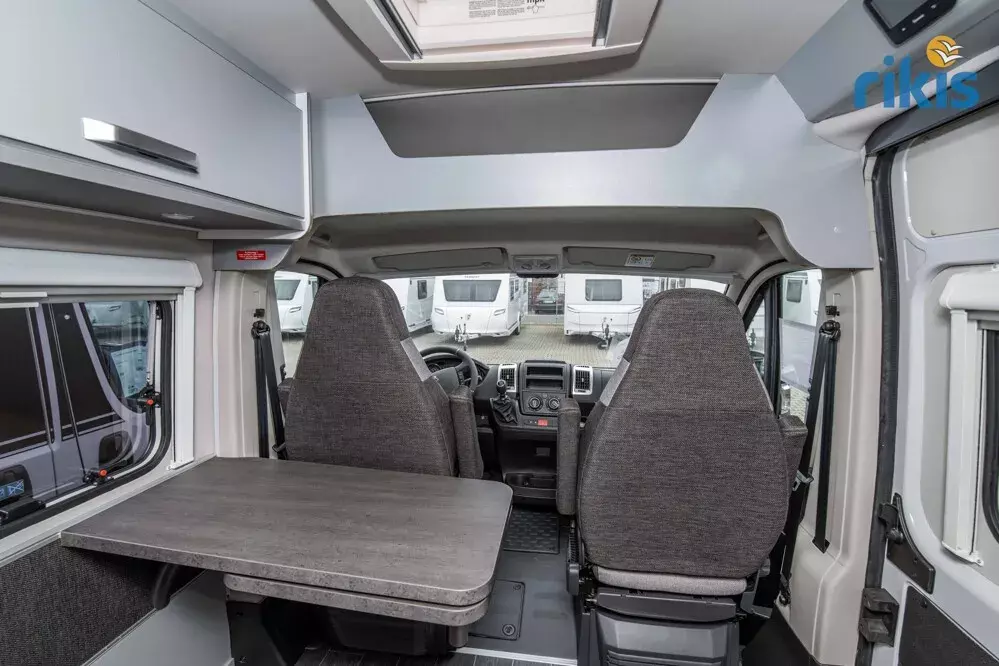 - Voltage-Paket (Ambientebeleuchtung im Wohnraum/Nasszelle, Regenrinne über der Schiebetür mit LED (dimmbar), Leseleuchten im Fahrerhaus, USB-Steckdose (1 Stück), im Küchenbereich, 230 V SCHUKO-Steckdose zusätzlich, im Heck (1 Stück), USB-Steckdose (1 Stück), im Heck, 230 V SCHUKO-Steckdose zusätzlich, in der Sitzgruppe (1 Stück))