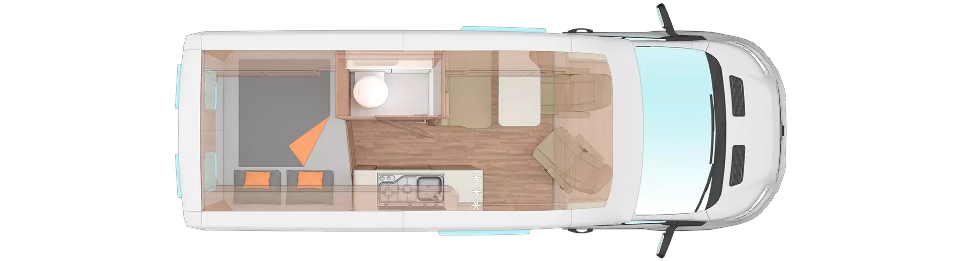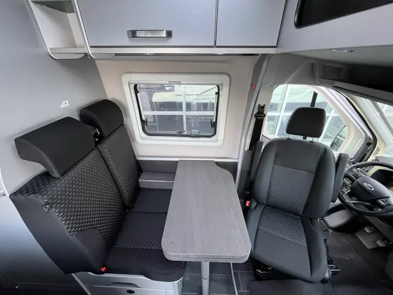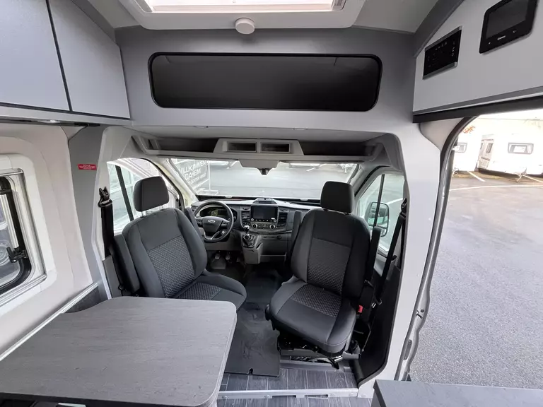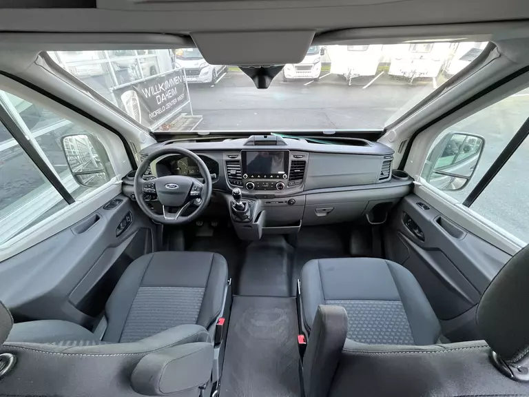 - Voltage-Paket: Regenrinne über der Schiebetür mit LED (dimmbar) / 230 V SCHUKO-Steckdose zusätzlich, in der Sitzgruppe (1 Stück) + zusätzlich, im Heck (1 Stück) / USB-Steckdose (1 Stück), im Küchenbereich + (1 Stück), im Heck / Leseleuchten im Fahrerhaus / Ambientebeleuchtung im Wohnraum/Nasszelle (dimmbar)