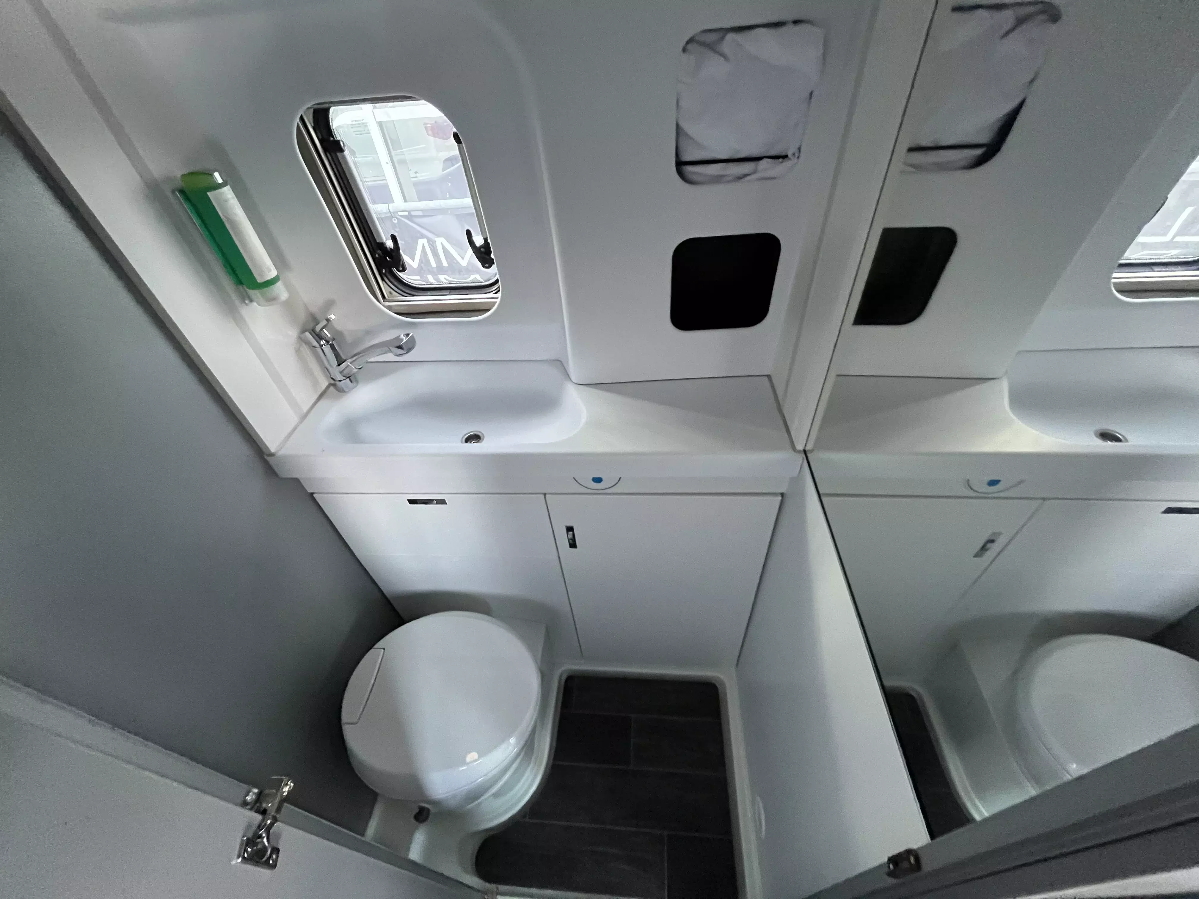 - Ausstellfenster, mit Insektenschutz und Verdunklung (Toilettenraum)