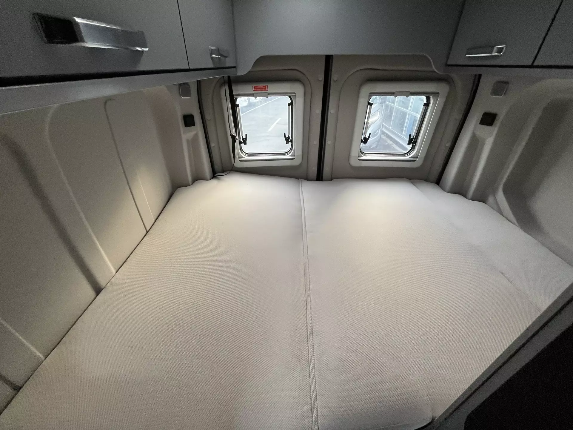- Camper Premium Paket: Frontstoßfänger in Wagenfarbe teillackiert / Lederlenkrad mit Radio-Fernbedienung / Handschuhfach, zusätzlich abschließbar / Scheinwerfer mit statischem Abbiegelicht / Nebelscheinwerfer / Cupholder im Dashboard links / rechts / Seitenschutzleisten / 2. Schlüssel, klappbar mit Fernbedienung / Fahrerhaus-Innenraumbeleuchtung