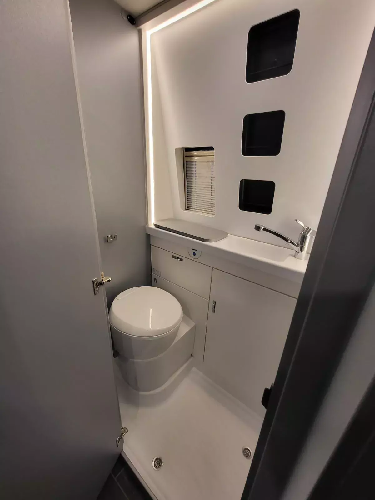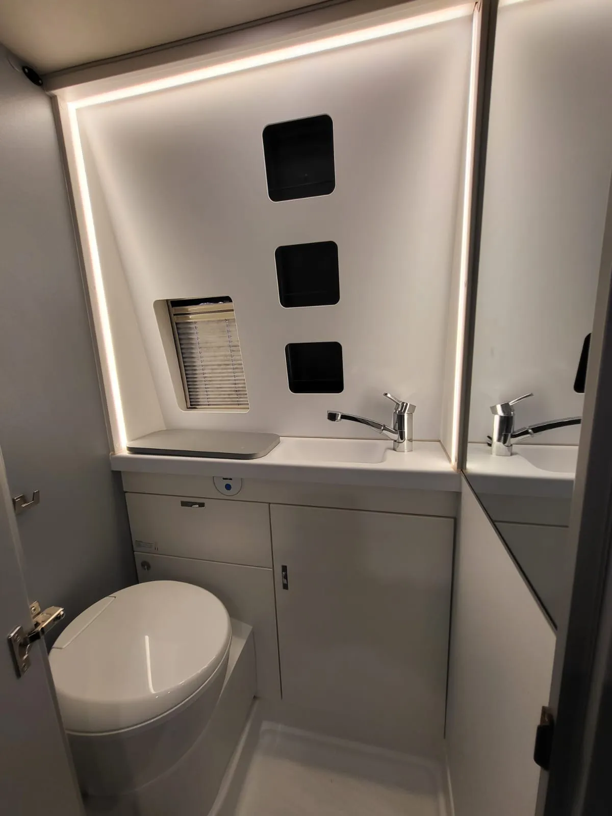 - Ausstellfenster, mit Insektenschutz und Verdunklung (Toilettenraum)