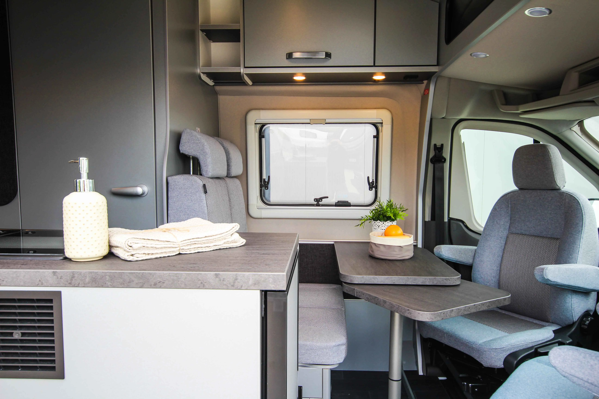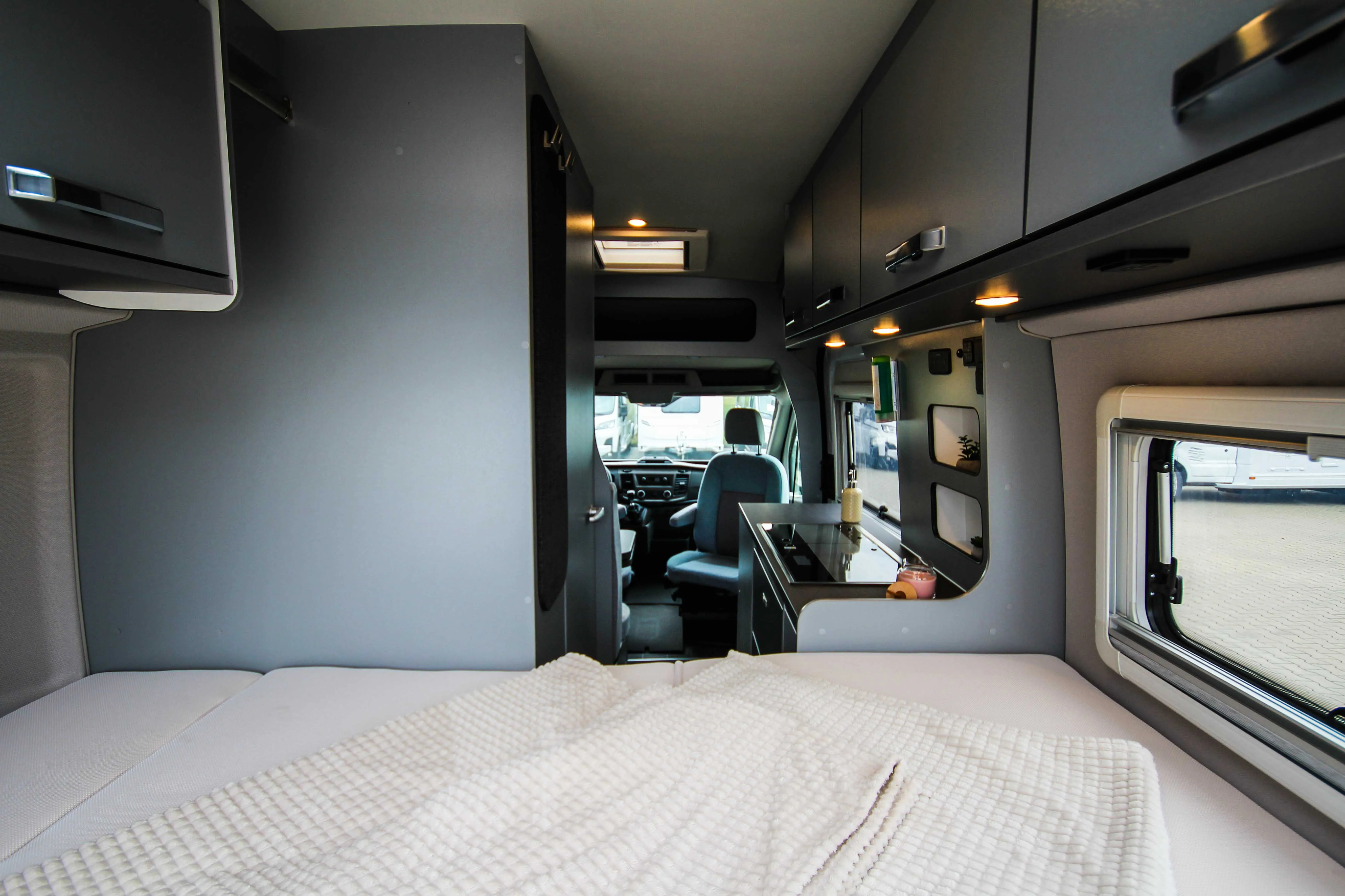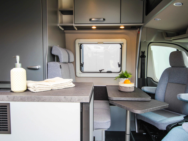 - Voltage - Paket (Regenrinne über der Schiebetür mit LED (dimmbar), 230 V SCHUKO-Steckdose zusätzlich, in der Sitzgruppe (1 Stück), 230 V SCHUKO-Steckdose zusätzlich, im Heck (1 Stück), USB-Steckdose (1 Stück), im Küchenbereich, USB-Steckdose (1 Stück), im Heck, Leseleuchten im Fahrerhaus, Ambientebeleuchtung im Wohnraum/Nasszelle (dimmbar))
