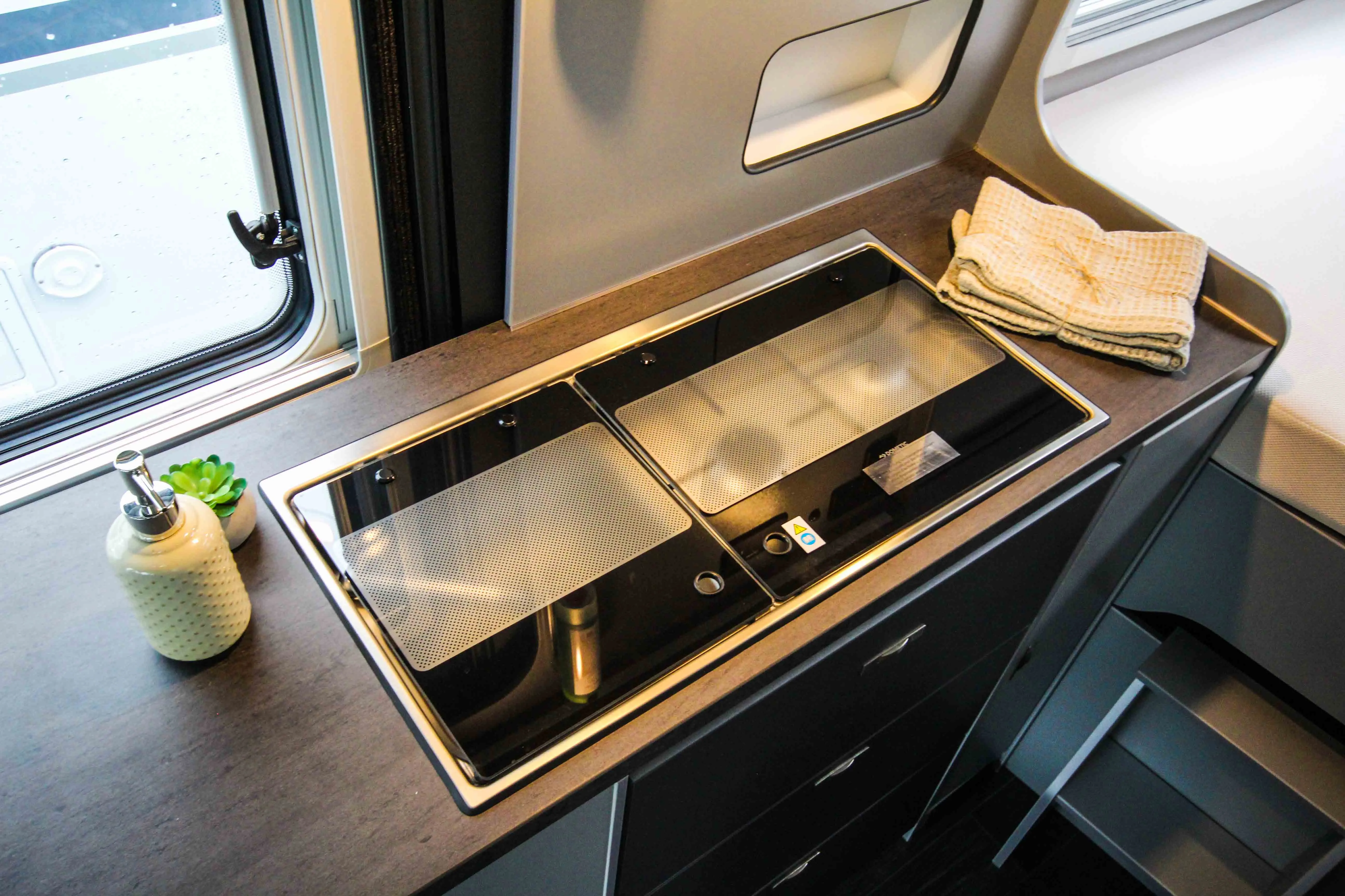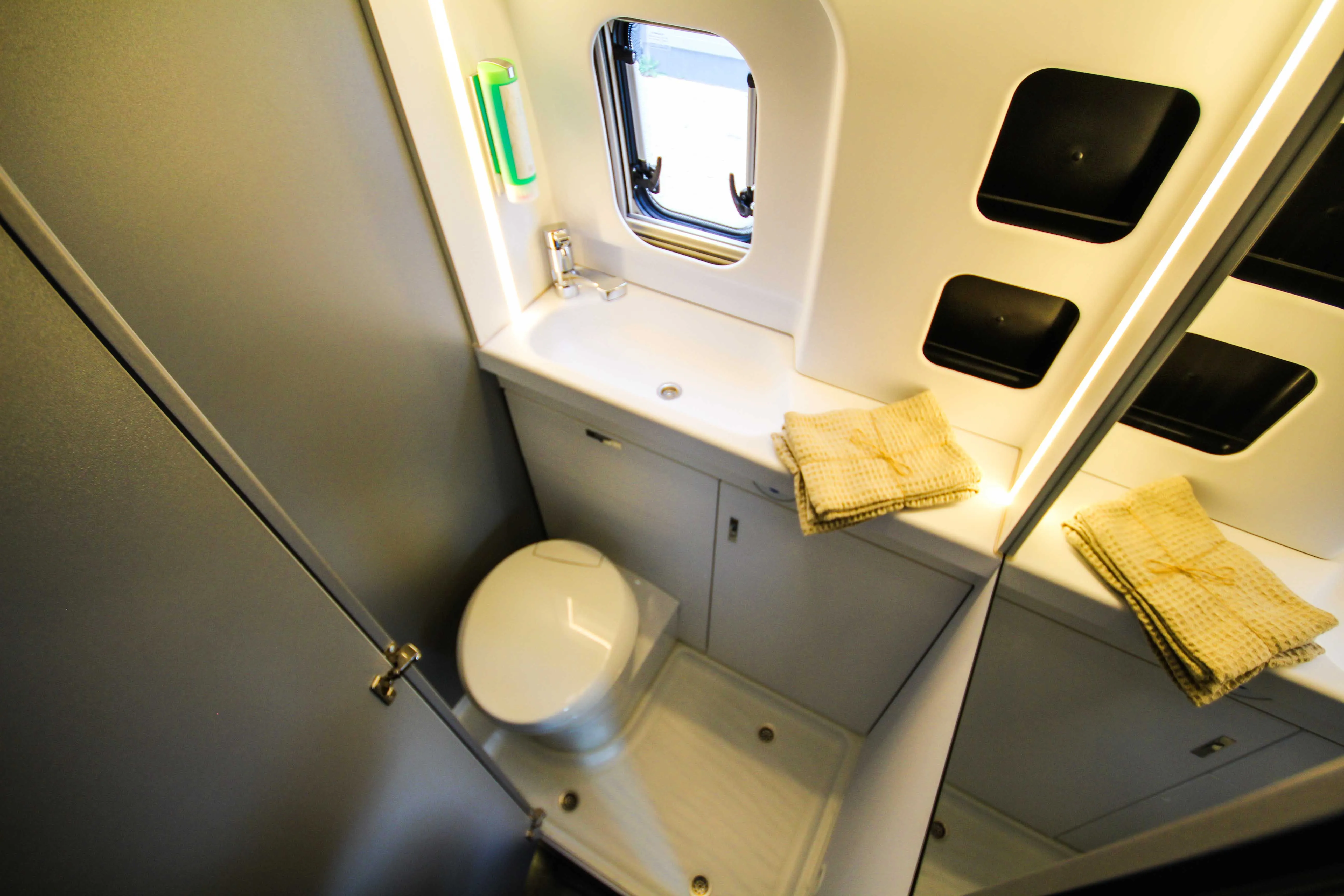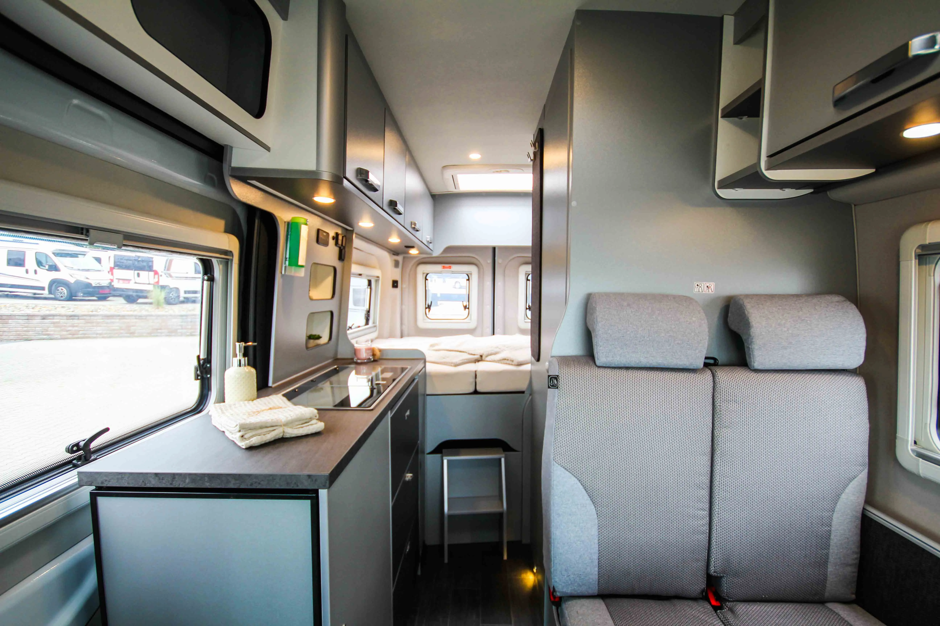 - Voltage - Paket (Regenrinne über der Schiebetür mit LED (dimmbar), 230 V SCHUKO-Steckdose zusätzlich, in der Sitzgruppe (1 Stück), 230 V SCHUKO-Steckdose zusätzlich, im Heck (1 Stück), USB-Steckdose (1 Stück), im Küchenbereich, USB-Steckdose (1 Stück), im Heck, Leseleuchten im Fahrerhaus, Ambientebeleuchtung im Wohnraum/Nasszelle (dimmbar))